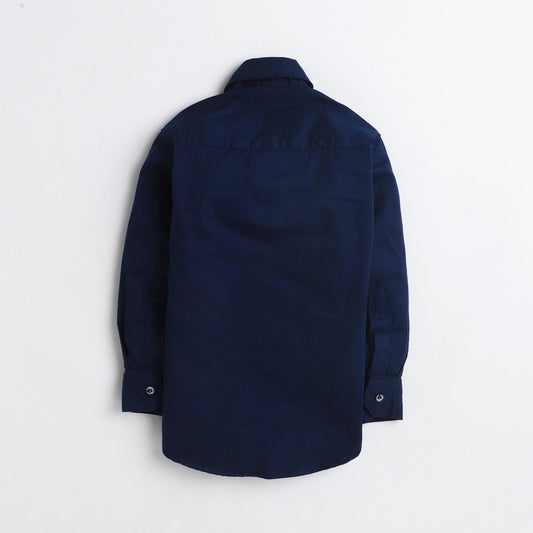 Polka Tots Full Sleeve Checkered Shirt with animal Applique Navy Blue