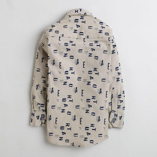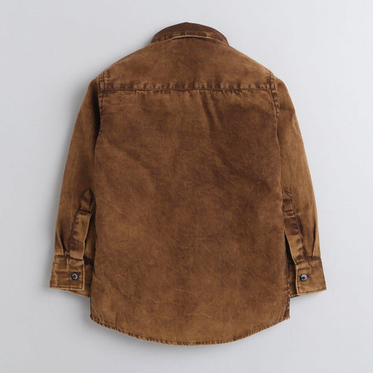 Polka Tots Full Sleeve Cargo Shirt With Two Pockets Flap Brown