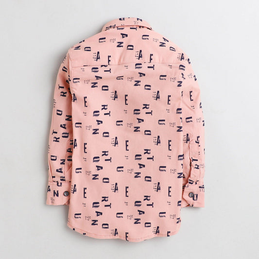 Polka Tots Full Sleeve Lycra Shirt Alphabet Print with Bow Tie Peach