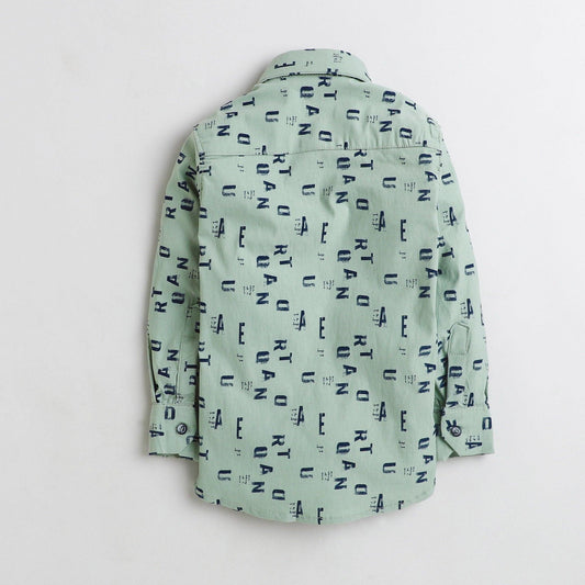 Polka Tots Full Sleeve Lycra Shirt Alphabet Print with Bow Tie Green