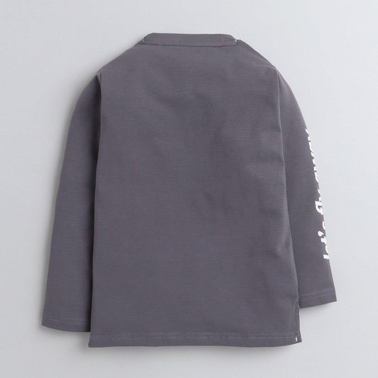 Polka Tots Full Sleeve T-Shirt with one side Sleeve Print and Flying Plane Grey