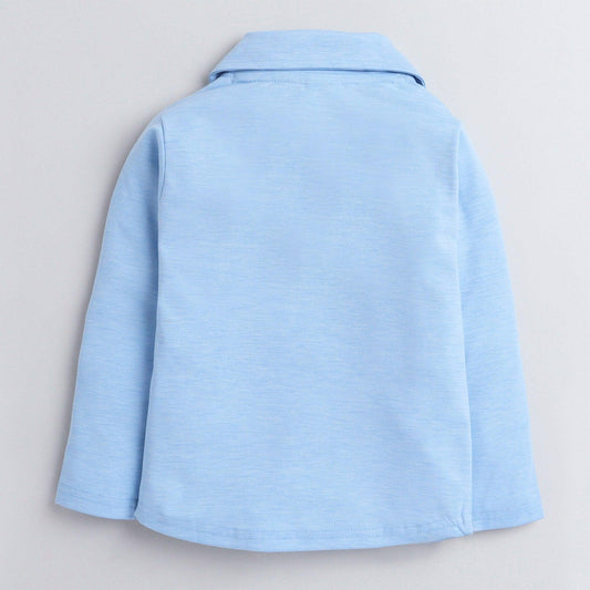 Polka Tots Full Sleeve Shirt with Dinosaur and Applique Detail Sky Blue