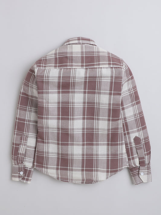 Polka Tots Full Sleeves Cotton Checked Shirt with Bear Patch - Brown