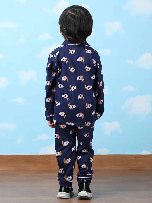 Polka Tots Full sleeve Elephant print Night suit - Navy