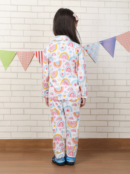 Polka Tots Full sleeve Rainbow print Night suit - Multicolor