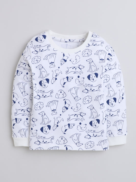 Polka Tots Full Sleeve Puppy Print Co-ord Joggers - White