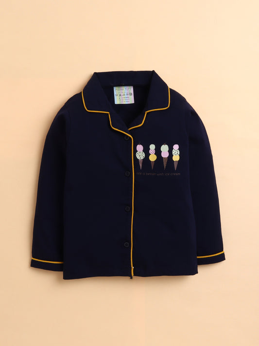 Polka Tots Full sleeve Ice cream Print Night suit - Navy