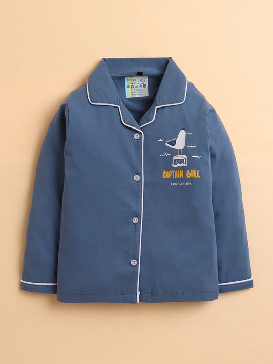Polka Tots Full sleeve Captain Gull Print Night suit - Grey