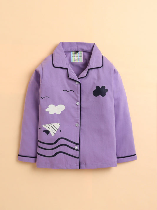 Polka Tots Full sleeve Fish print Night suit - Lavender