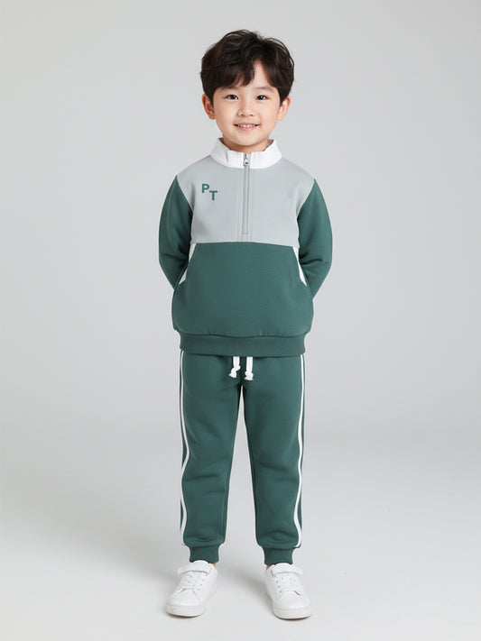 Polka Tots Full sleeve Colorblock Sweatshirt & Co-ord Jogger Set - Green