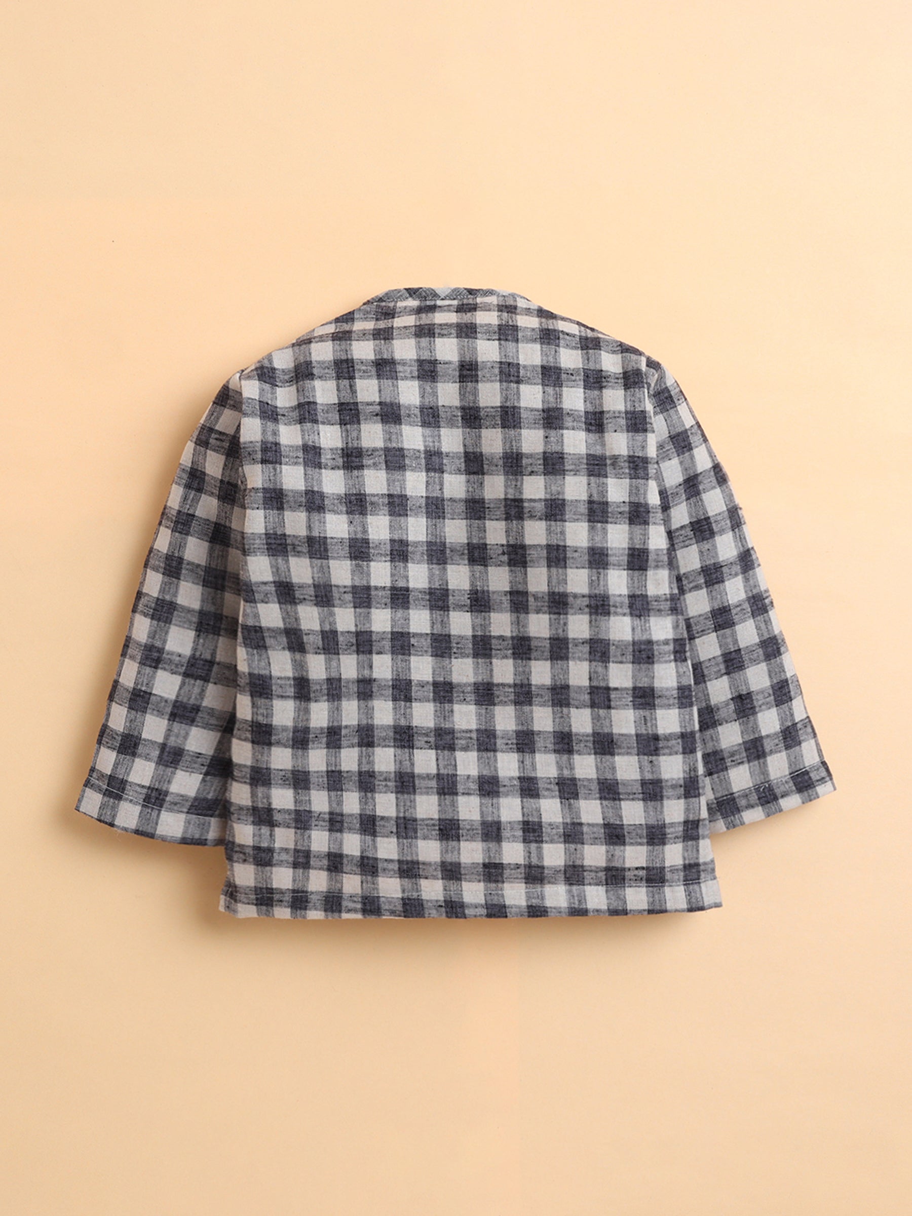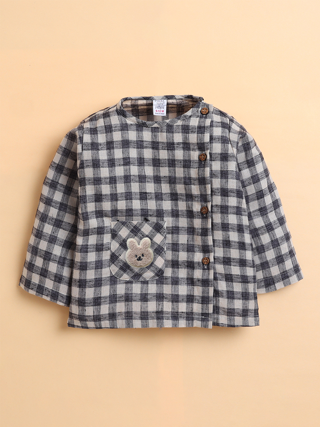 Polka Tots Soft Cotton Full-Sleeves Teddy Pocket Gingham Jhabla & Pant Set - Black