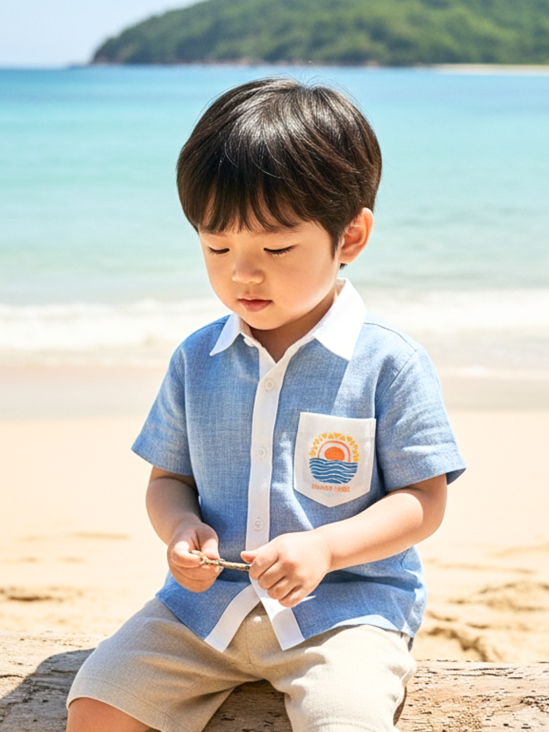 Polka Tots Half Sleeves Summer times print Shirt - Blue