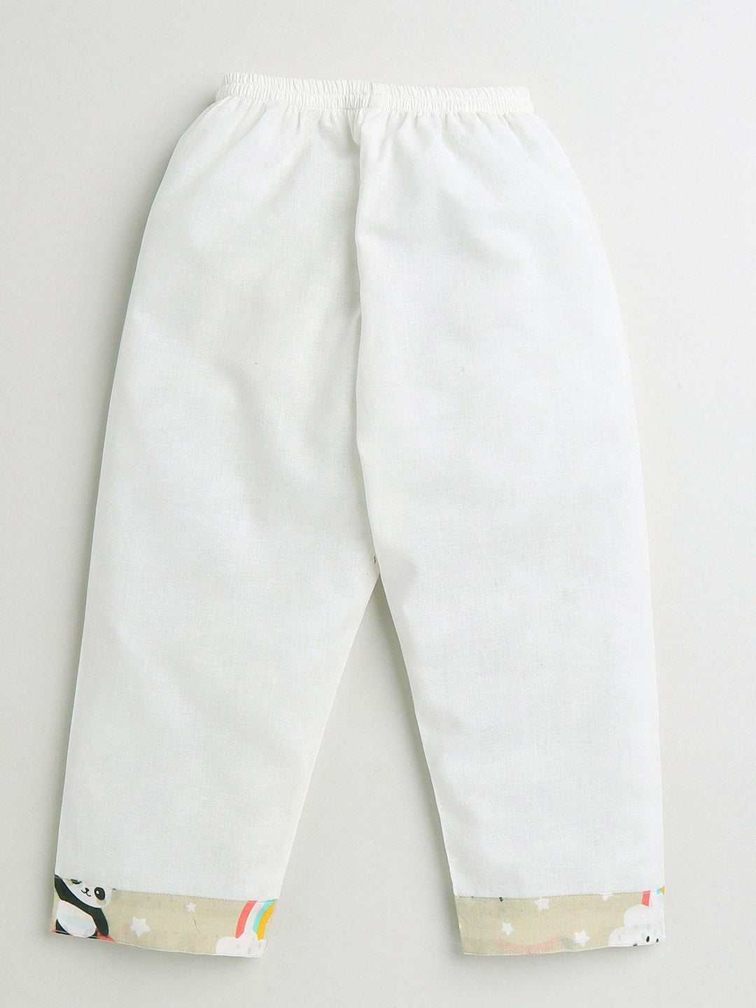 Polka Tots Panda Rainbow Print Full sleeves Nightwear Kurta pyjama set - Cream