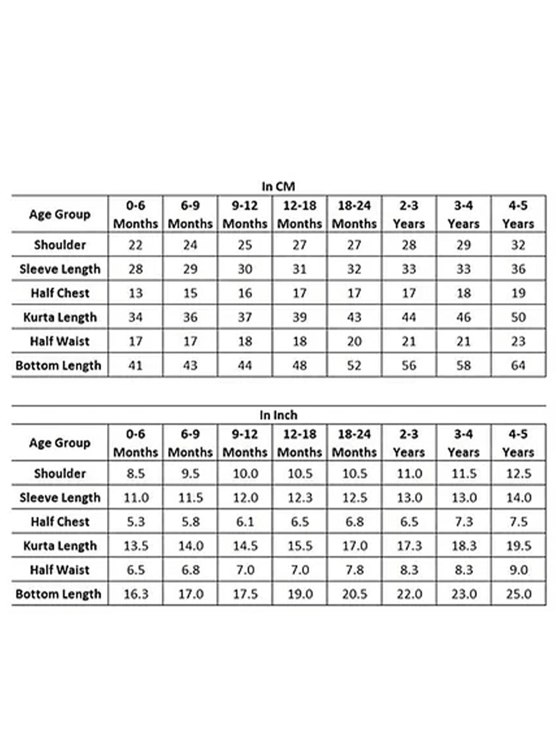 Polka Tots' Kurta pyjamas are available in various sizes, from 0-6 months to 4-5