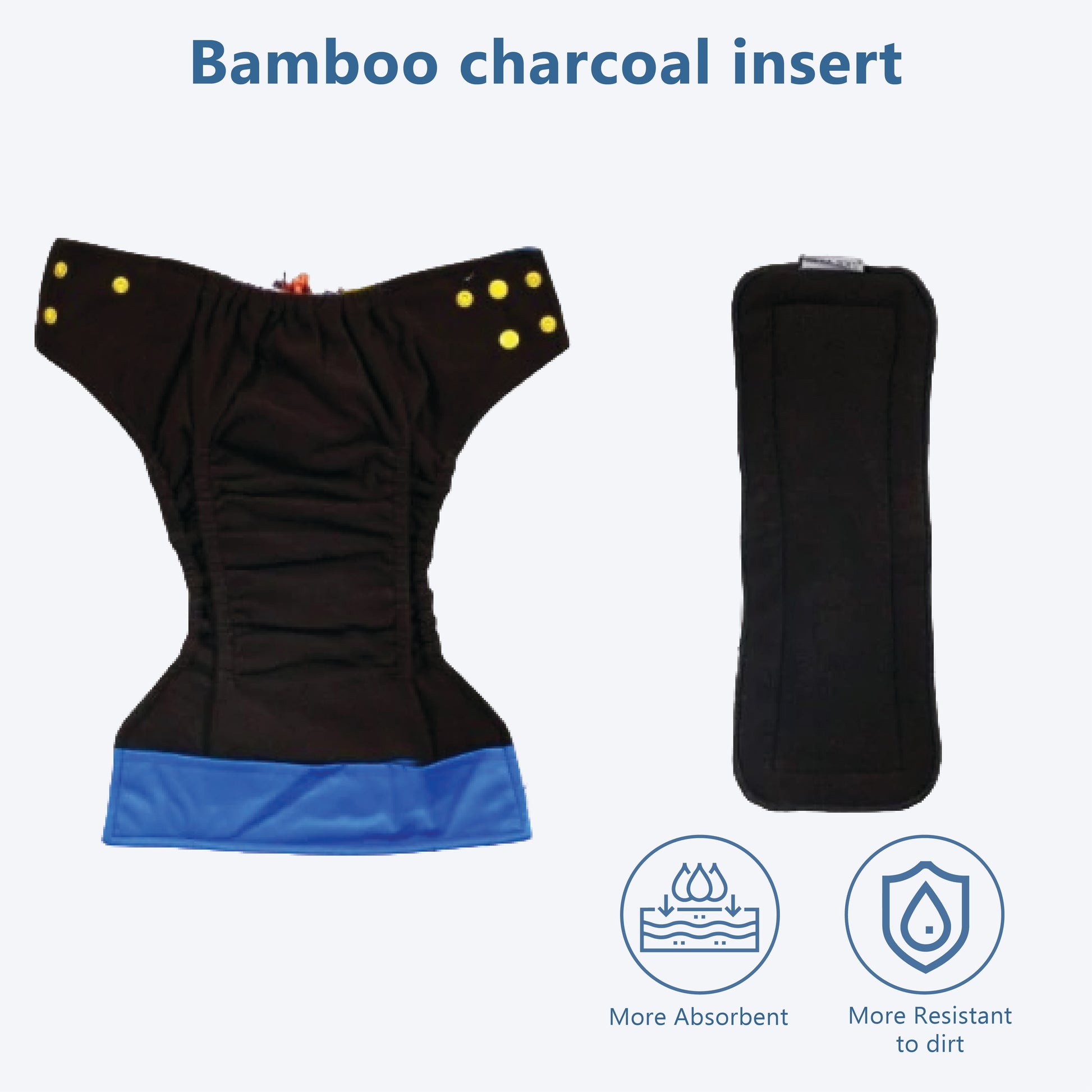- Soft & Comfortable: Stretchable waterproof outer fabric. The bamboo charcoal gently flexes around your baby. The soft absorbent inner fabric gently wicks moisture away from the baby's skin. Babies in cloth diapers are less susceptible to skin rashes unlike in disposables.