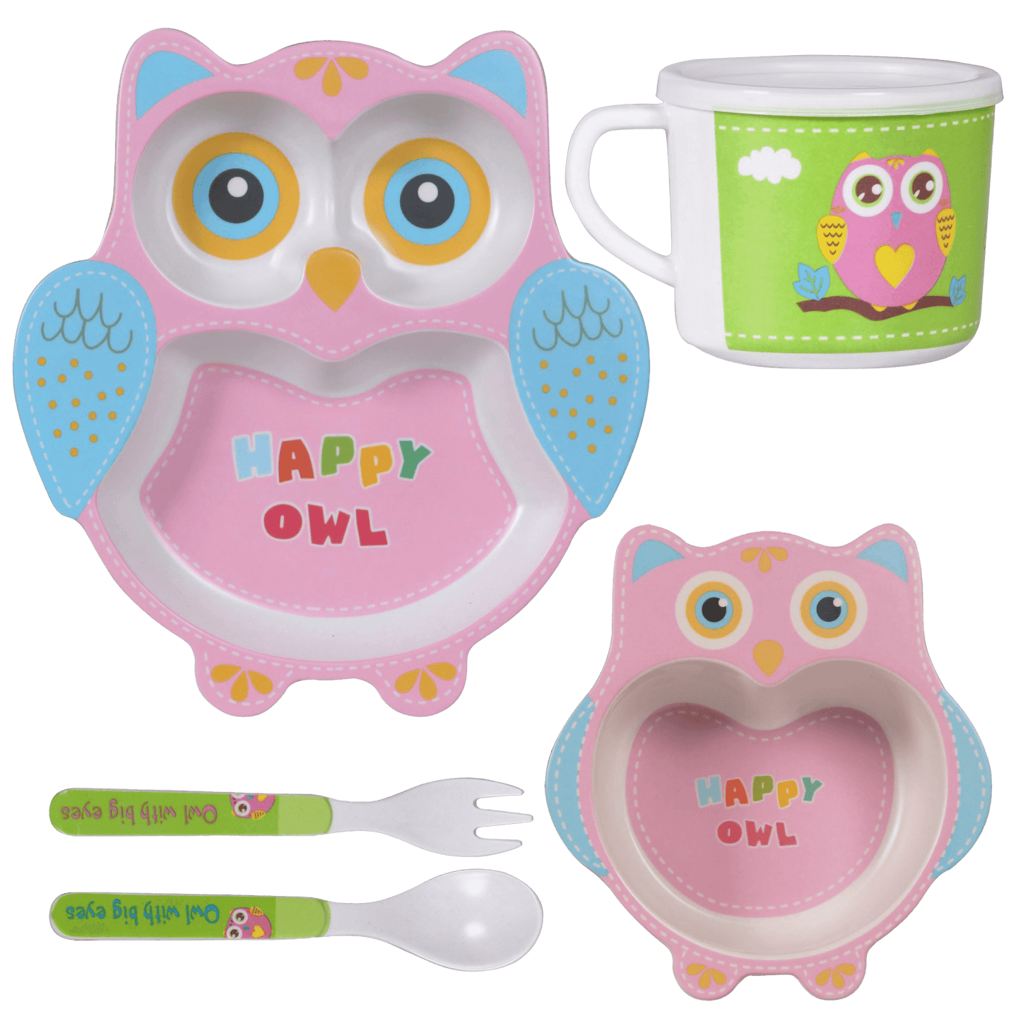 Eco-Friendly Bamboo Fiber Kids Crockery Set having 5 Pieces (Happy Owl)