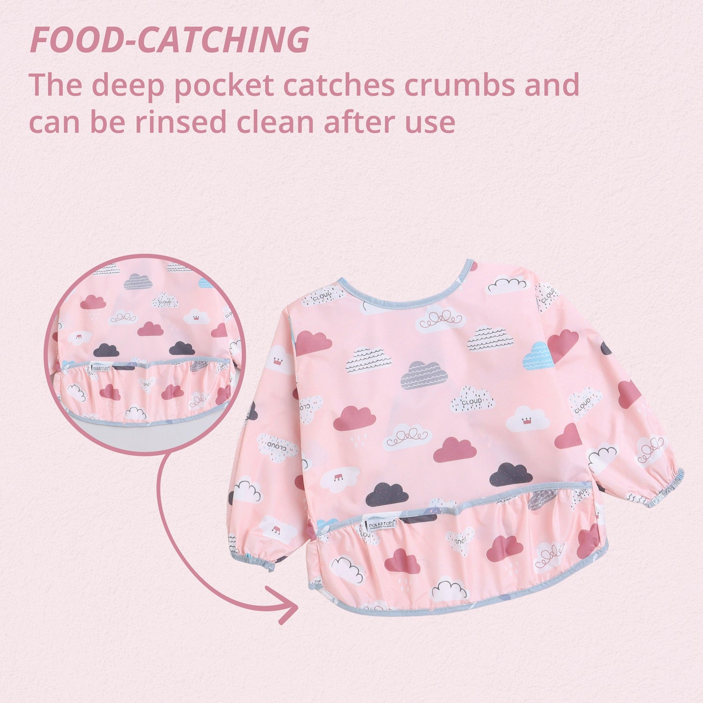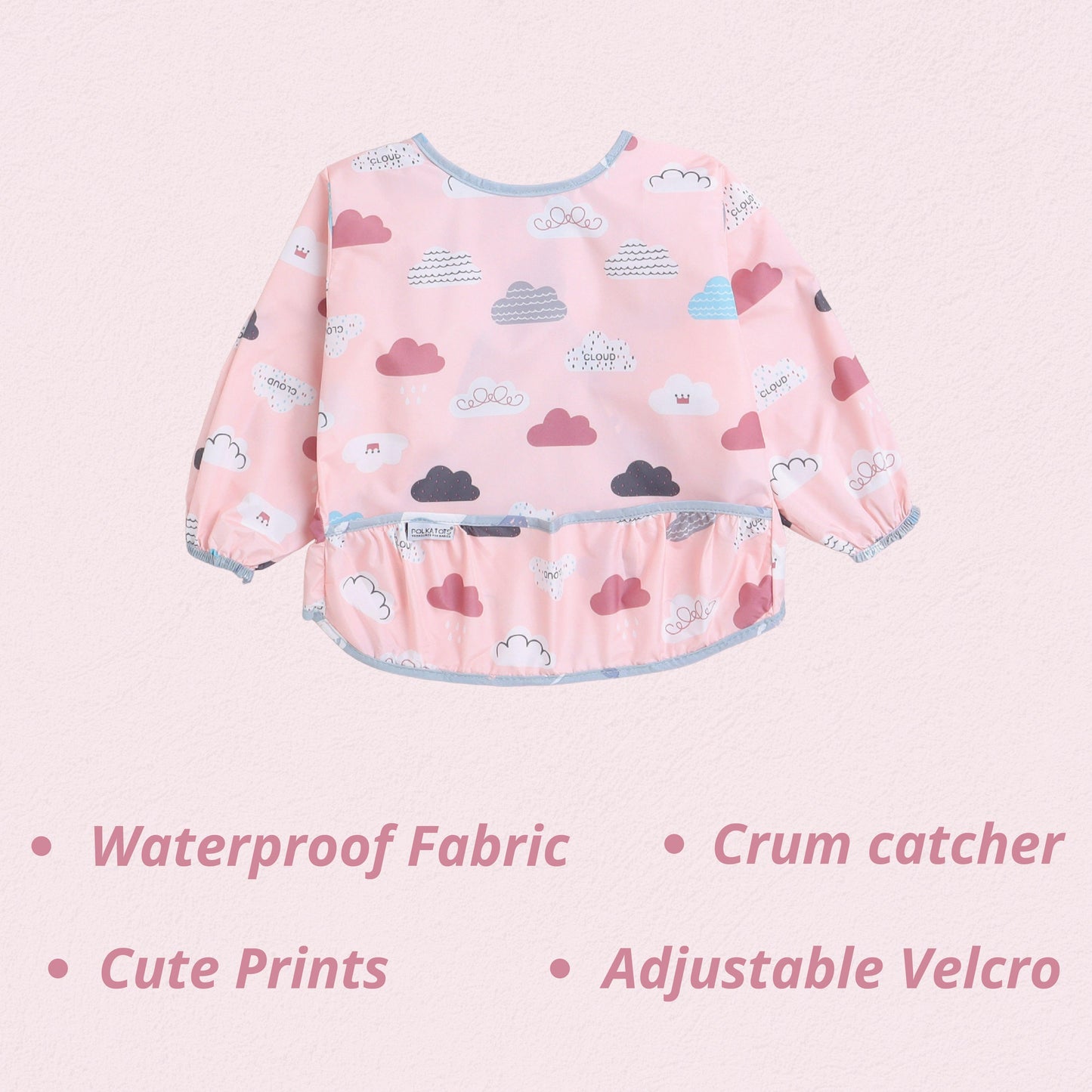 Full Sleeves Washable Waterproof Apron Feeding Bib for Babies -(Cloud)