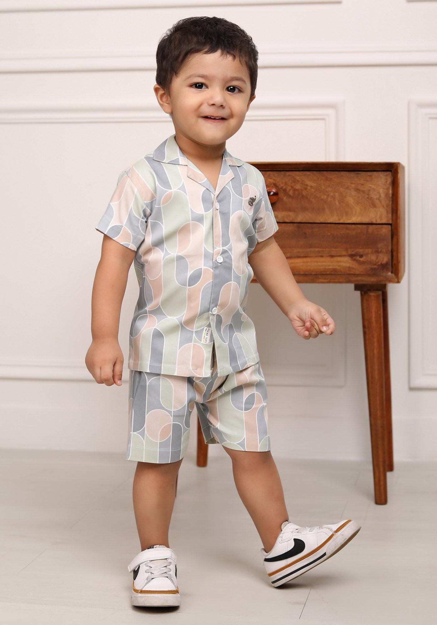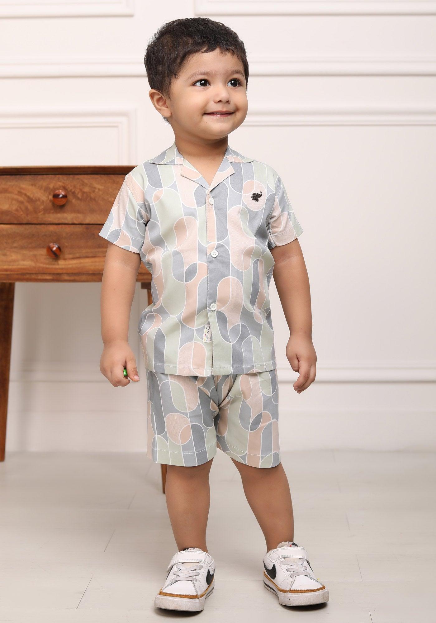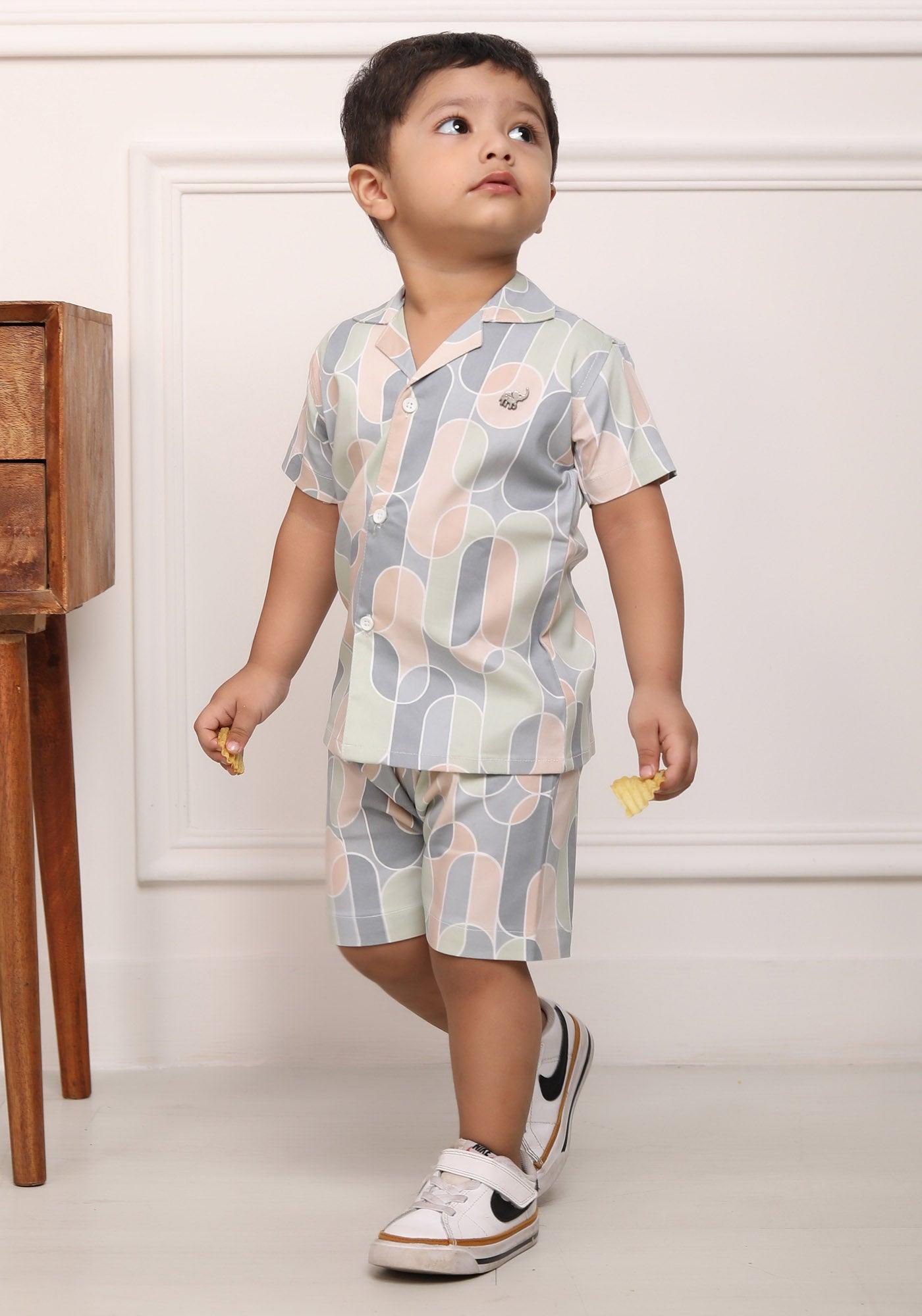 Polka Tots Cotton Half Sleeves Shirt With Shorts/Co-ord - Grey and Peach