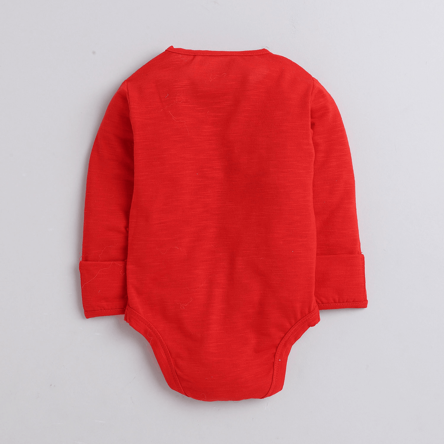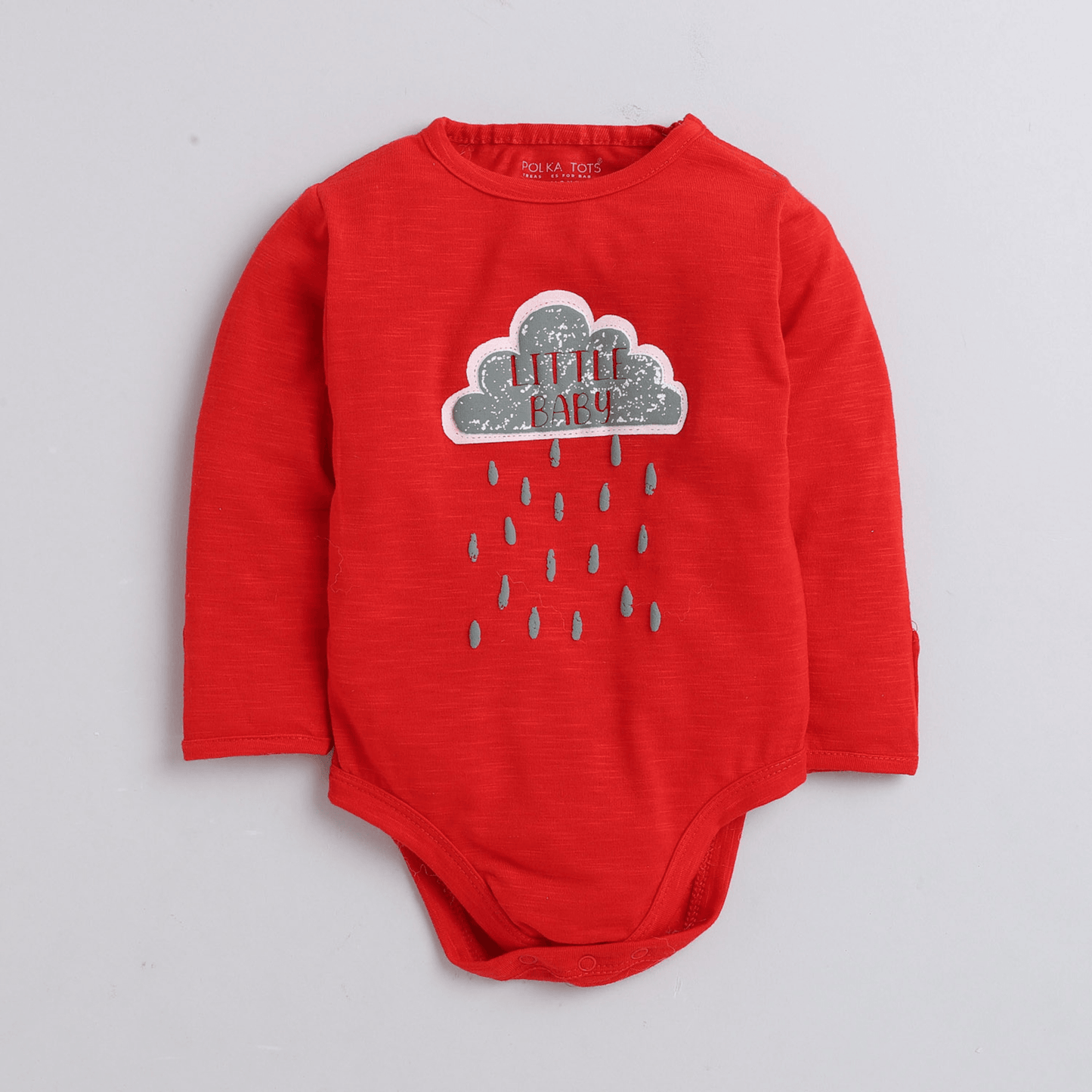 Polka Tots Full Sleeves Raining Cloud Printed Onesie - Red
