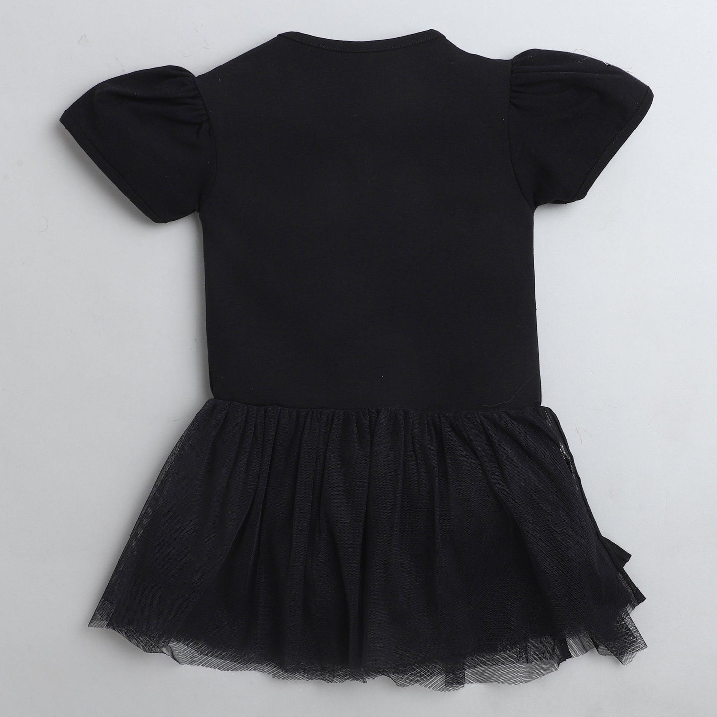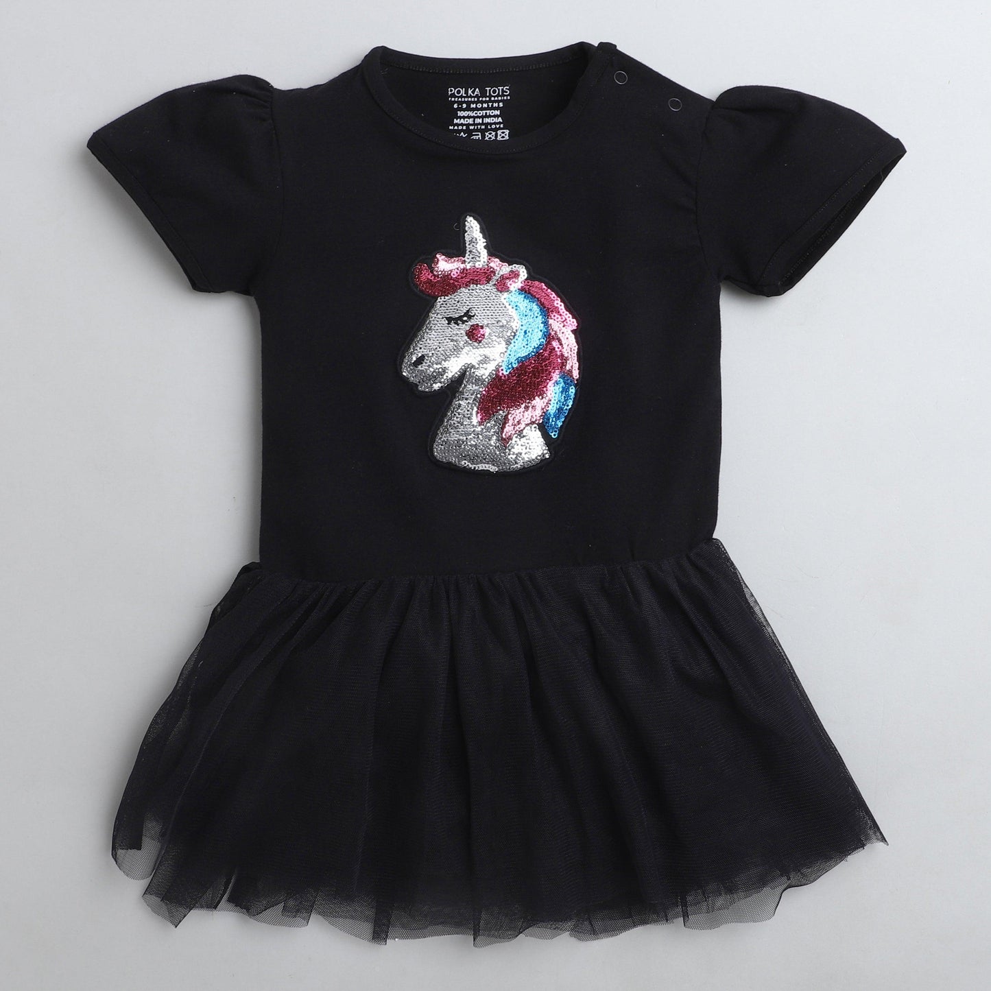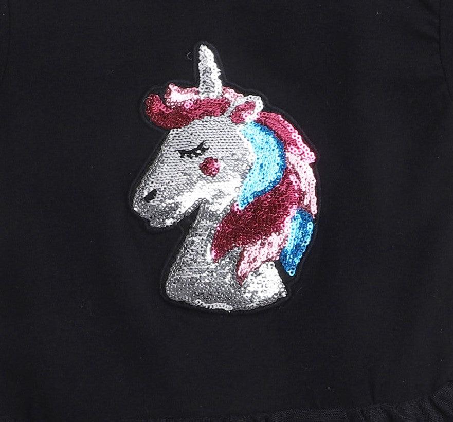 Polka Tots Half Sleeve Romper Onesie Sequence Unicorn Head - Black