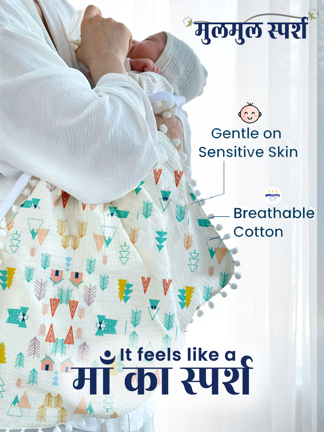 Crafted from 100% pure muslin cotton, this baby dohar feels feather-light, breathable, and soothing on delicate newborn skin perfect for everyday cuddles.