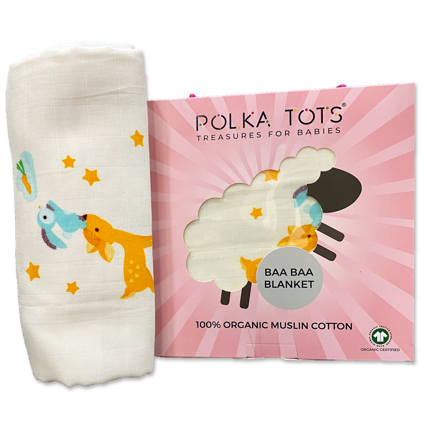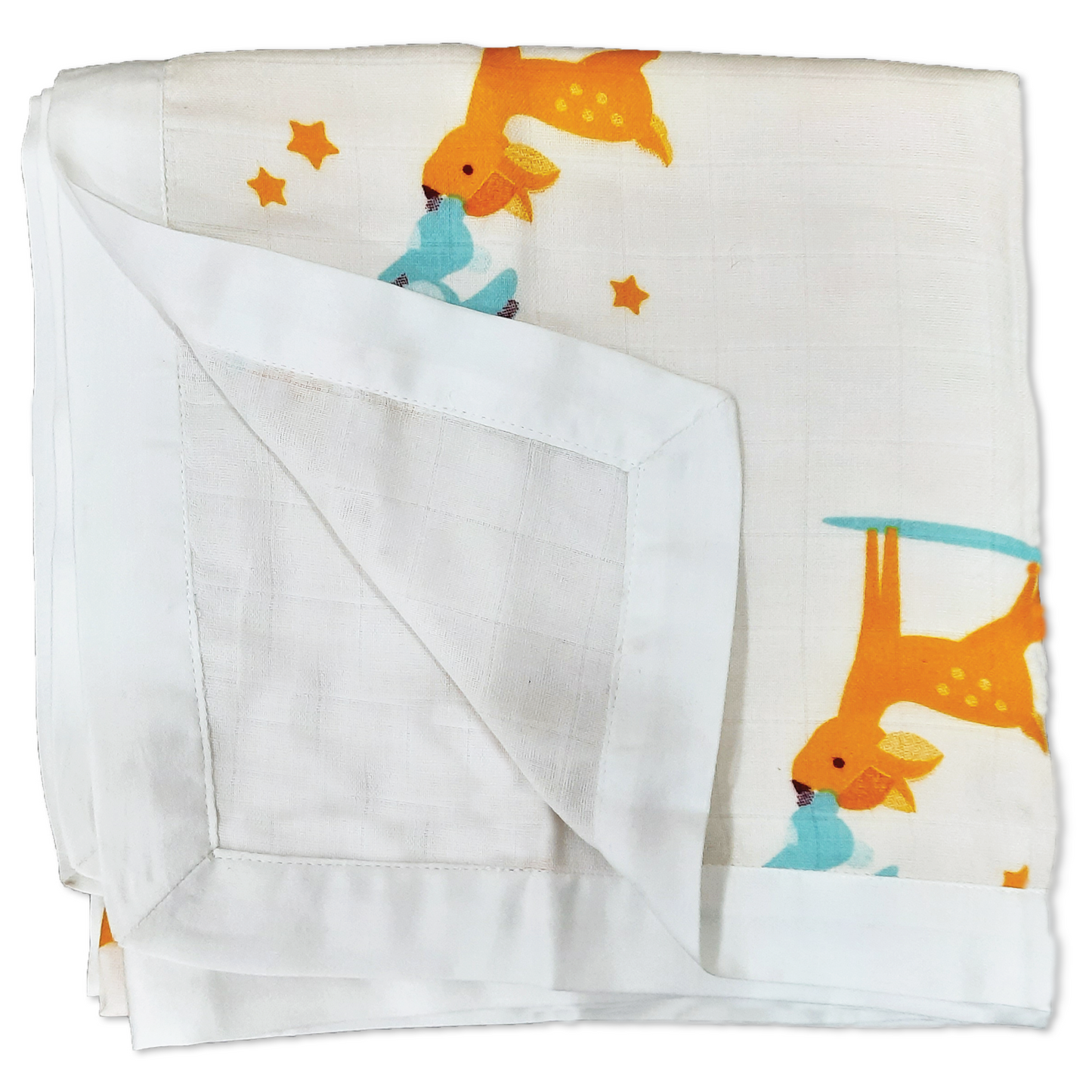 Polka Tots Organic Muslin Cotton two Layer Blanket SuperSoft Size 110 x 110 CM (Deer)