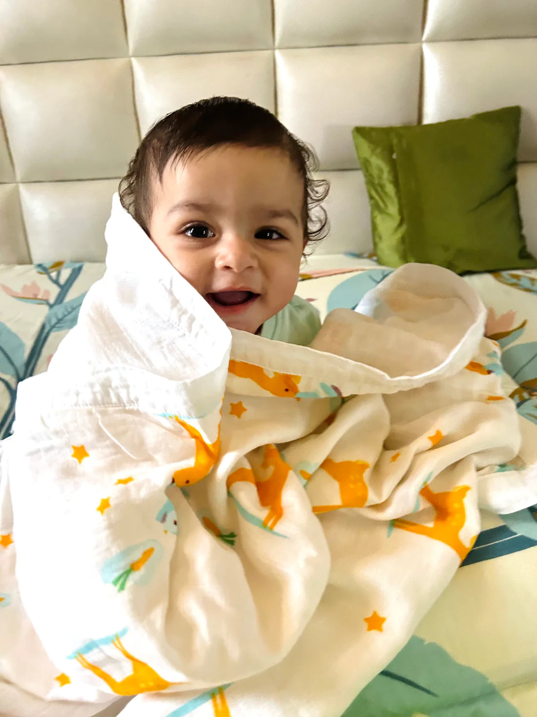 Breathable & Washable: Ensures that moisture is wicked away from the skin. During every wash, the muslin fibers will relax, which will make the blanket softer with every use. Your newborns face & skin will stay smooth and soft with this blanket.