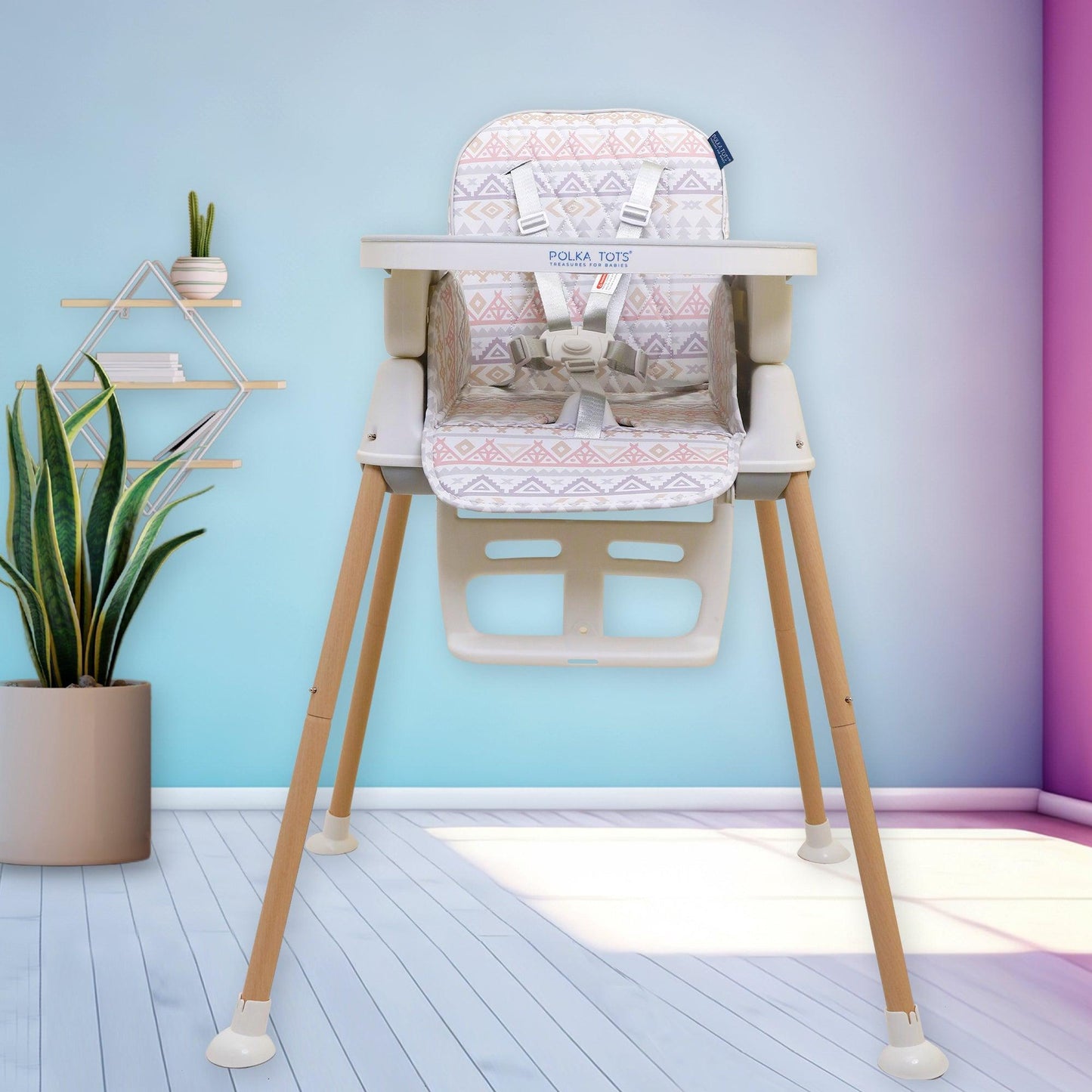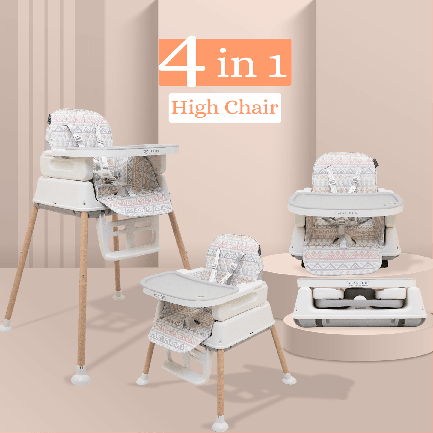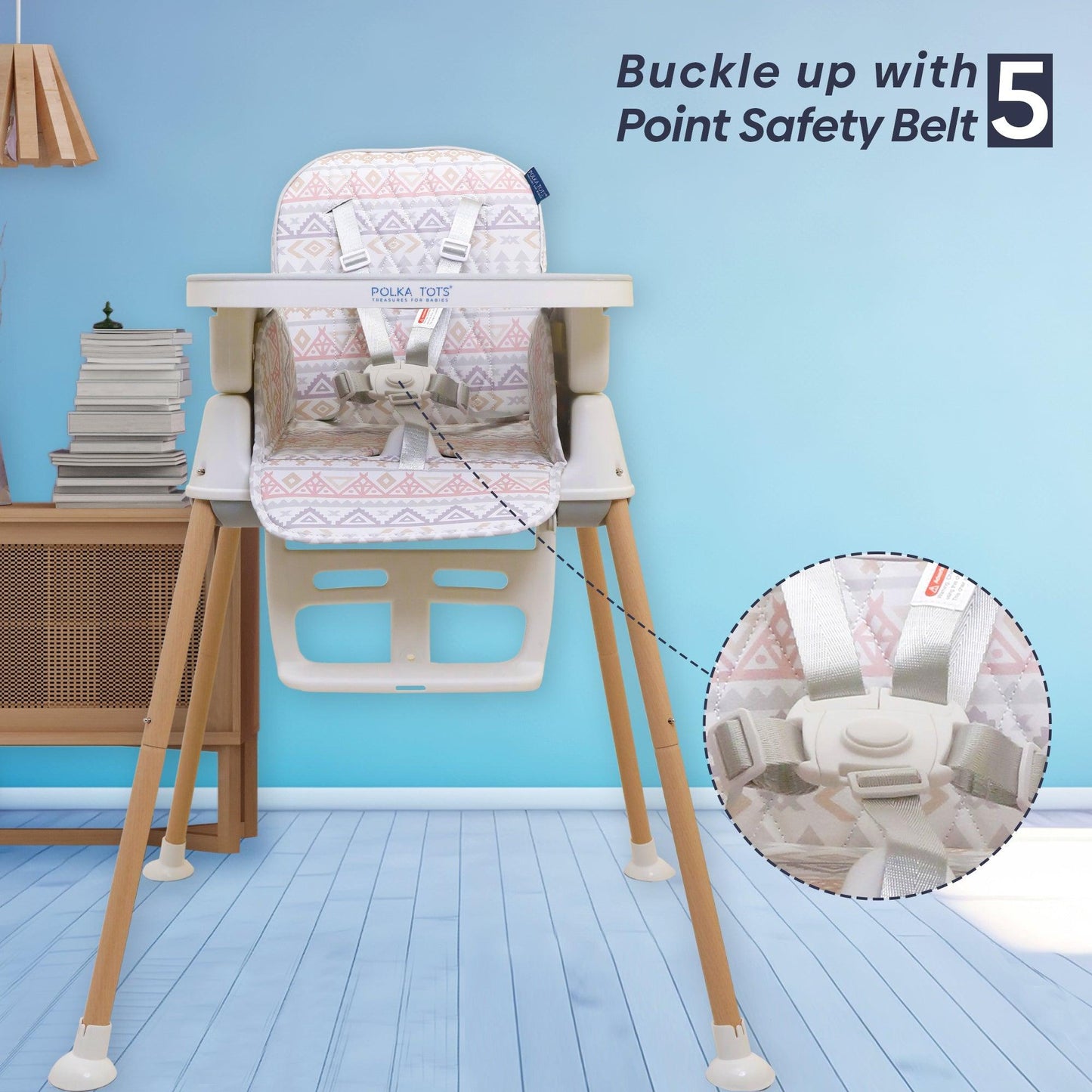 Look for a highchair with safety, adjustability, comfort, ease of cleaning, foldability, portability, affordability & Polka Tots Kids Feeding Chairs have it all.