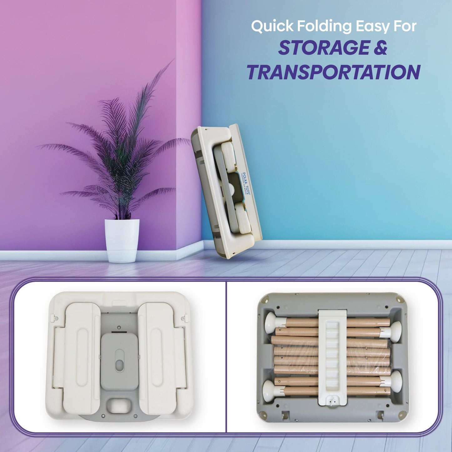 - Foldable Design- allows for easy storage and transportability, making it ideal for smaller living spaces, travel, and on-the-go families.