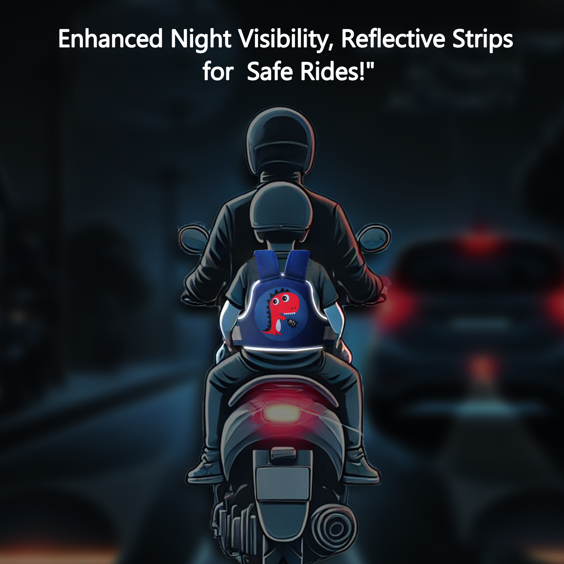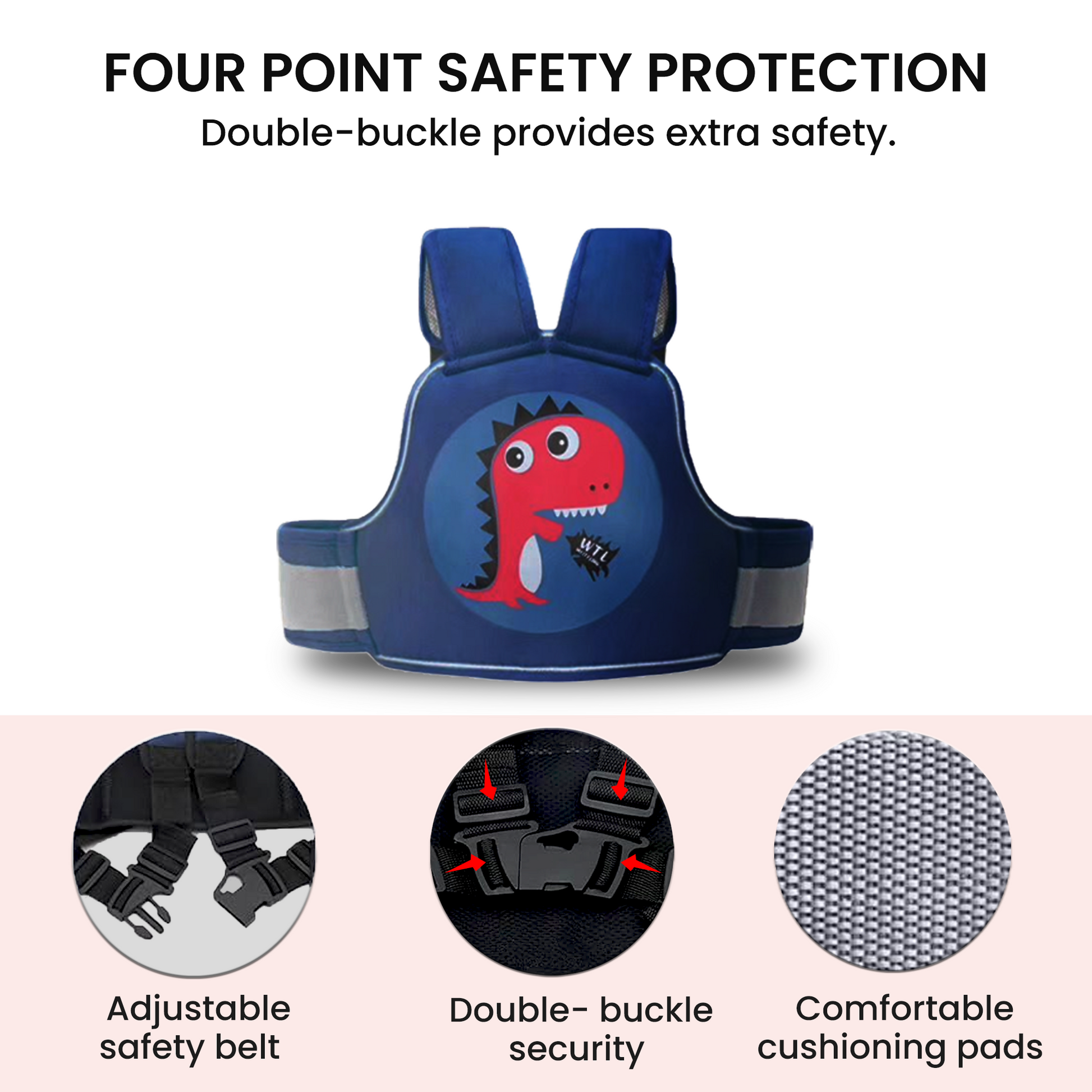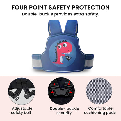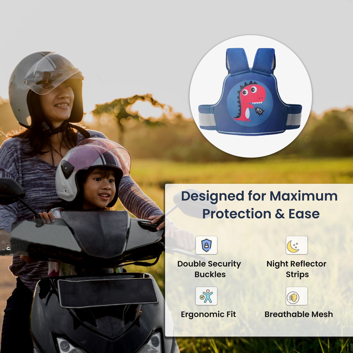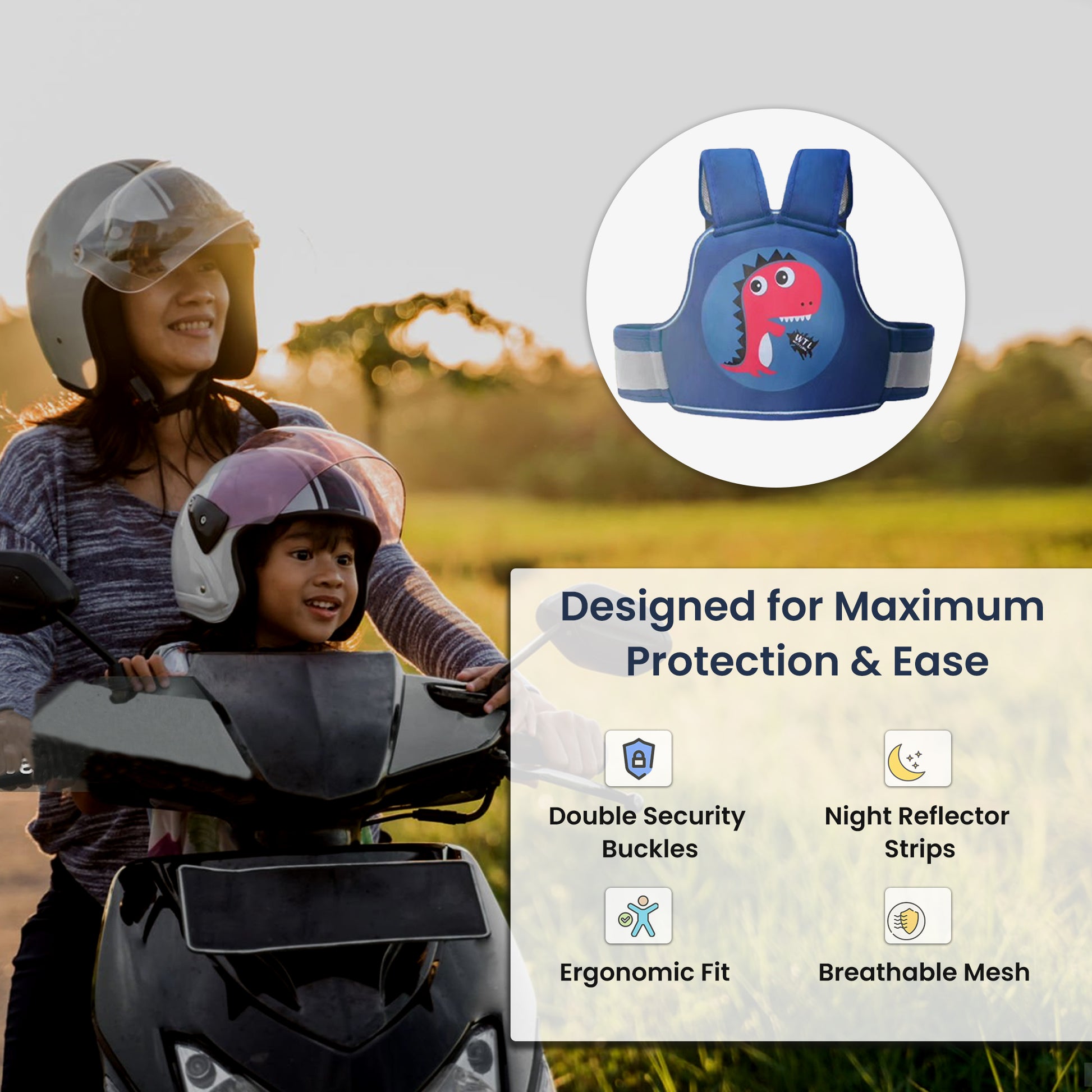 Baby Safety Travel Belt, Two Wheeler Baby Carrier for Kids Blue Color (Dinosaur)
