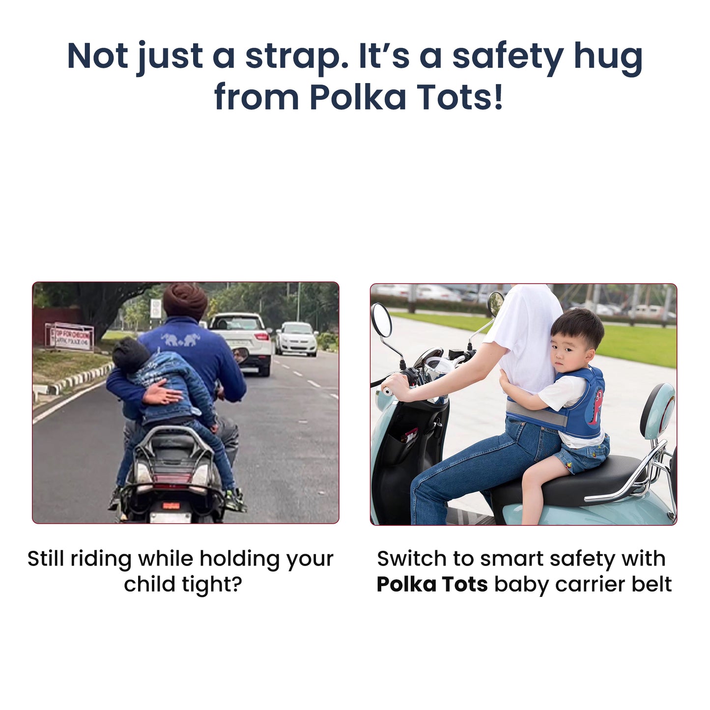Two-Wheeler Safety Belt is a simple harness designed to hold your loved one snug and secure, while you focus on driving. You no longer have to worry that your child might fall asleep, lose the fragile grip, be thrown off the seat when the road gets rough, or while making a sharp turn to avoid a pothole or encountering skid.
