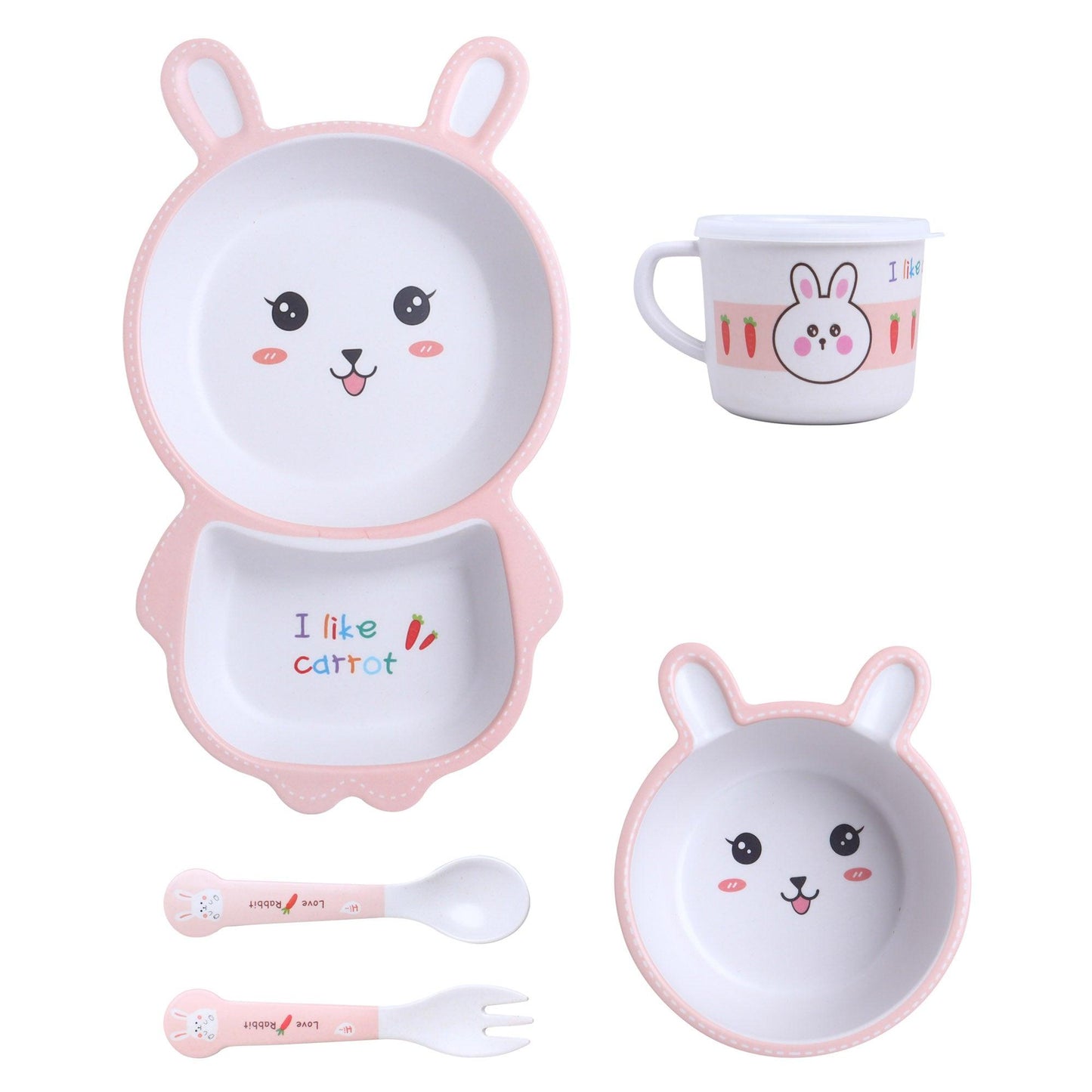 Eco-Friendly Bamboo Fiber Kids Crockery Set having 5 Pieces (Bunny)