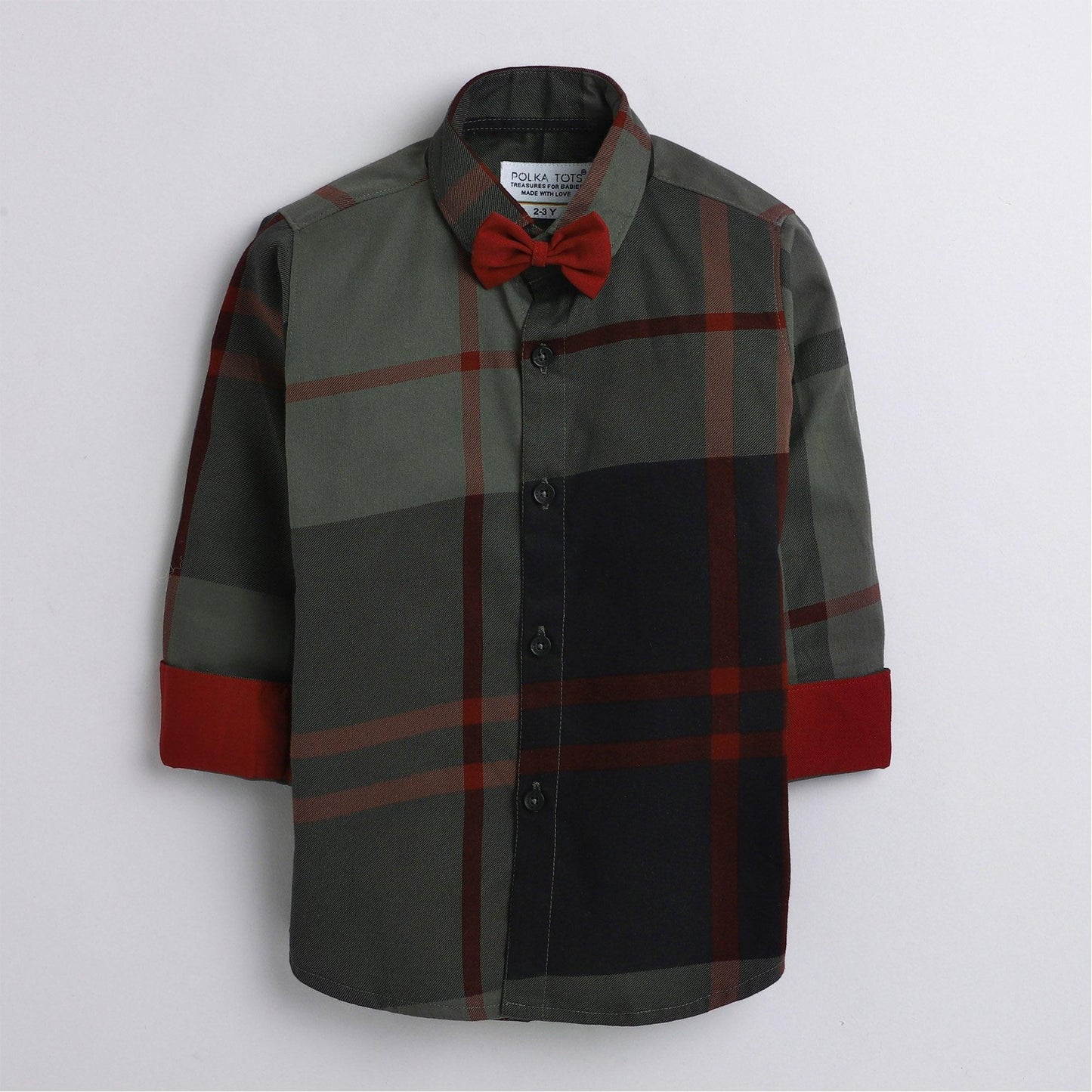 Polka Tots big checks red bow tie Kids shirt - Green