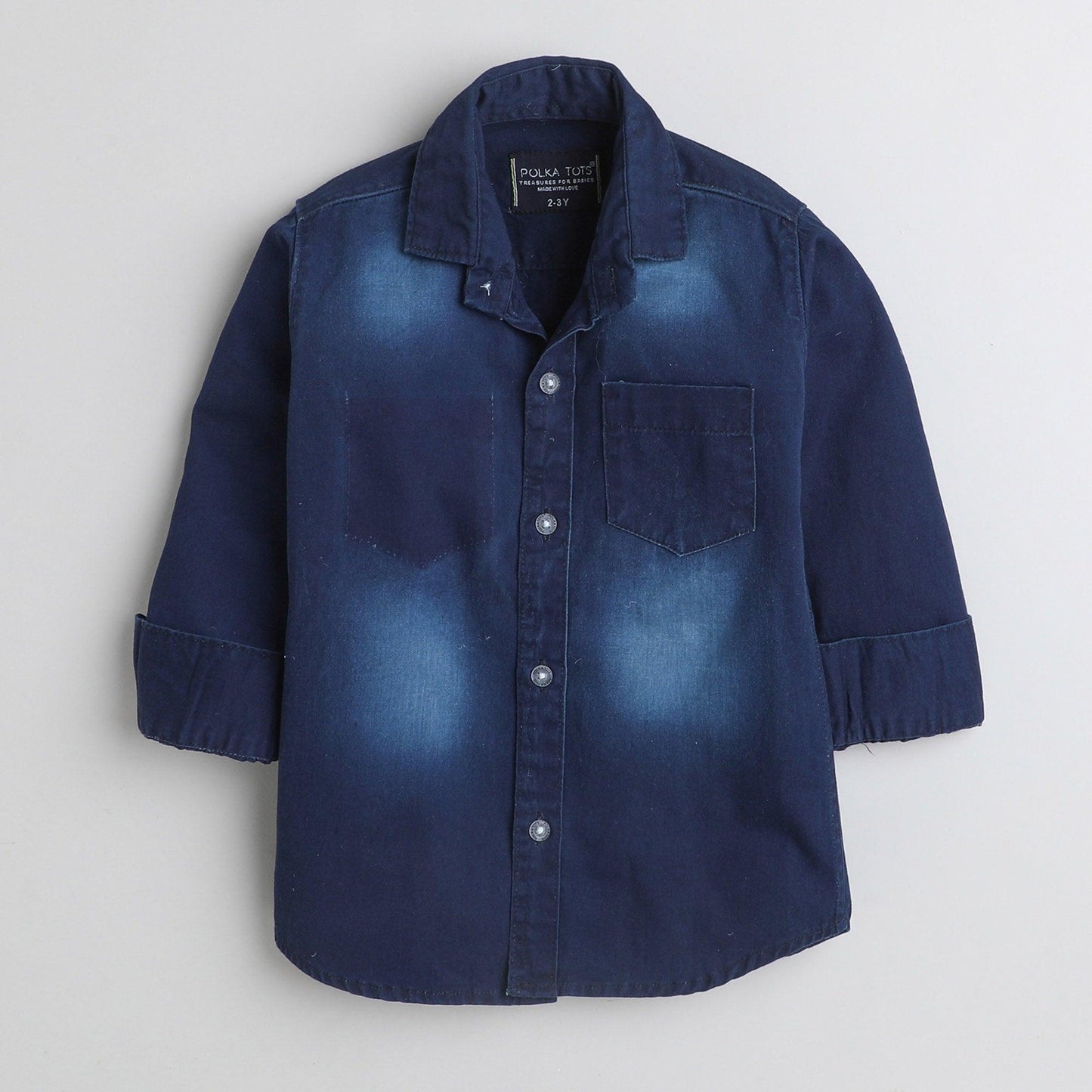 Polka Tots Cotton Full Sleeves Wash Effect Denim Shirt - Blue