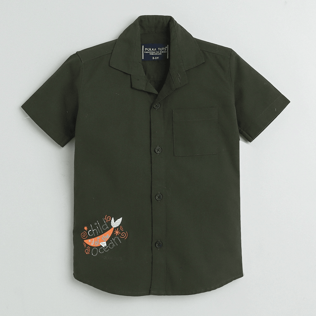 Polka Tots Cotton Regular Fit Half Sleeve Child Of The Ocean Glitter Shirt - Green