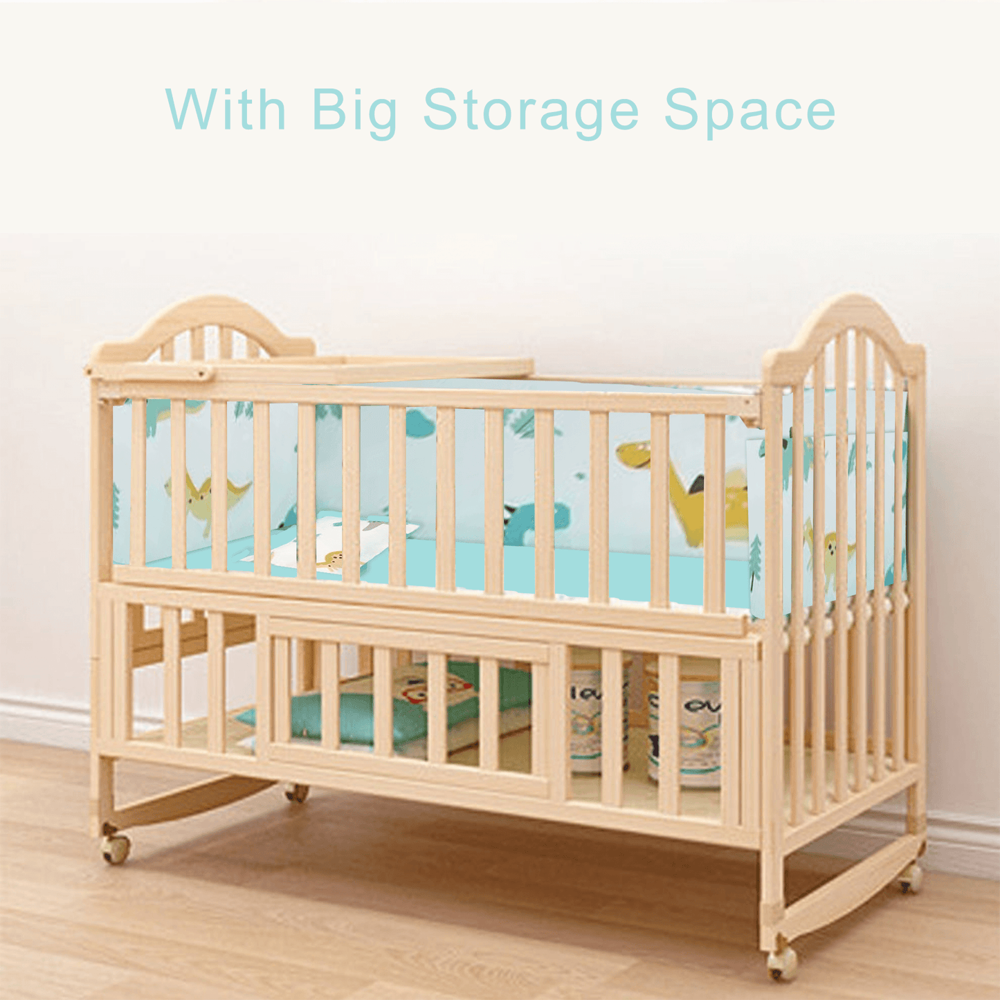 - Teething Rails - The side rails of the wooden cot are teething rails. It is safe for little ones when they chew these rails.