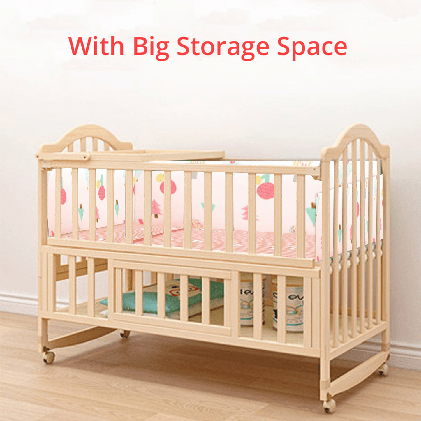 - Teething Rails - The side rails of the wooden cot are teething rails. It is safe for little ones when they chew these rails.