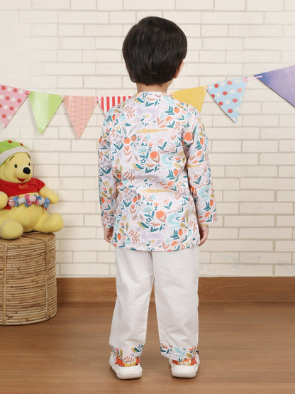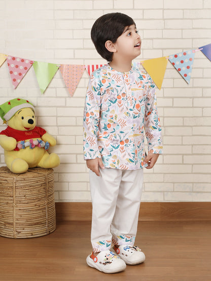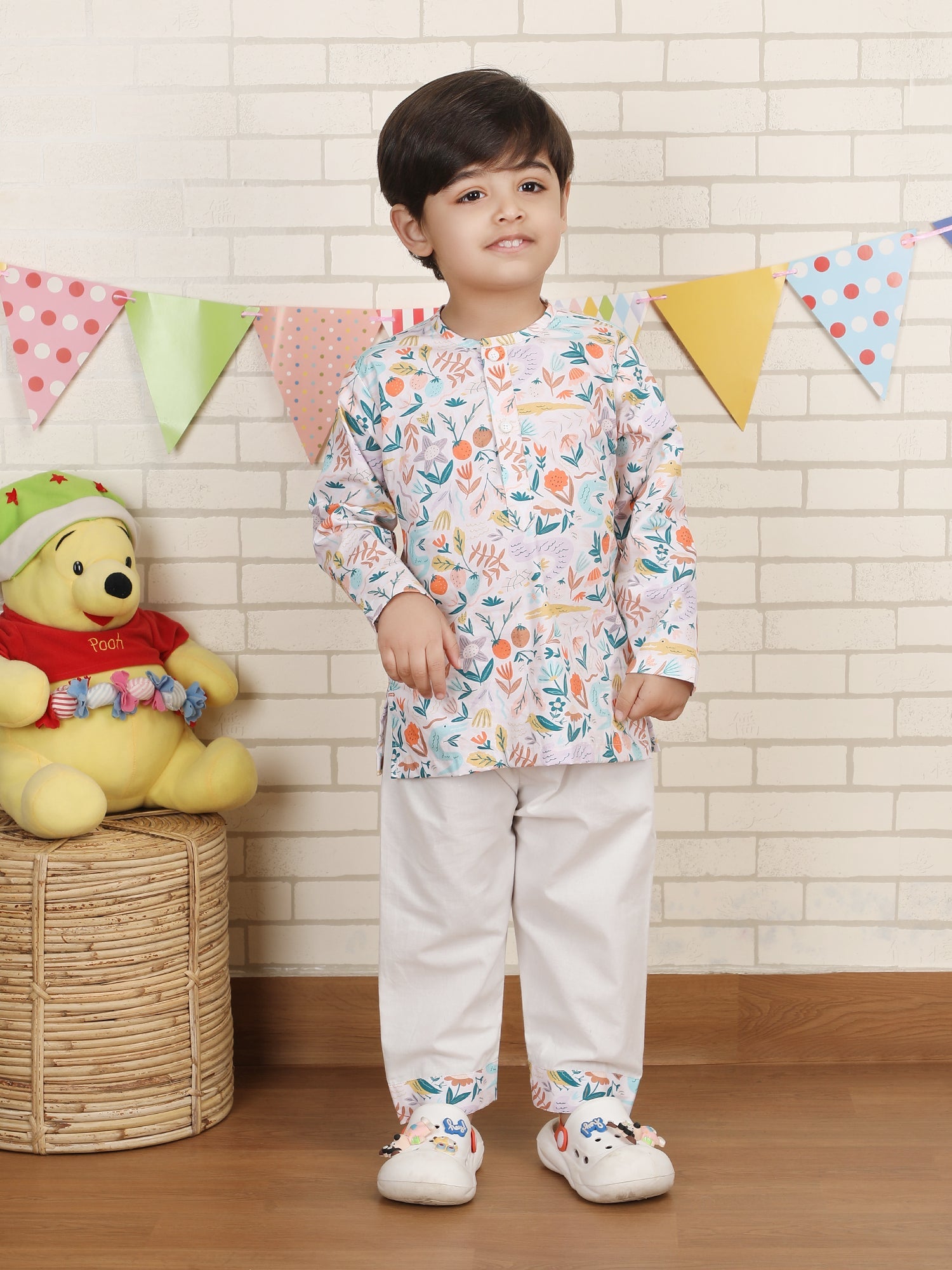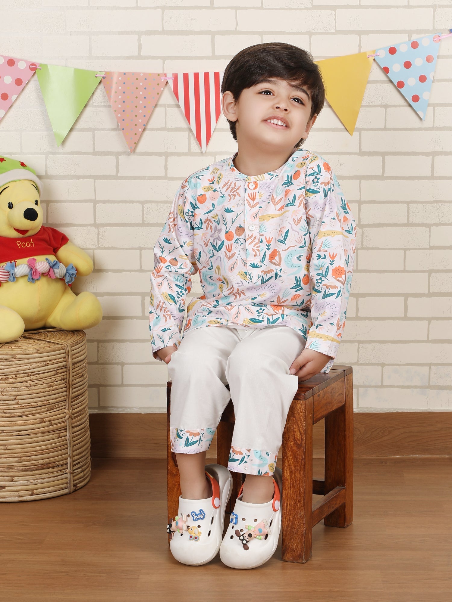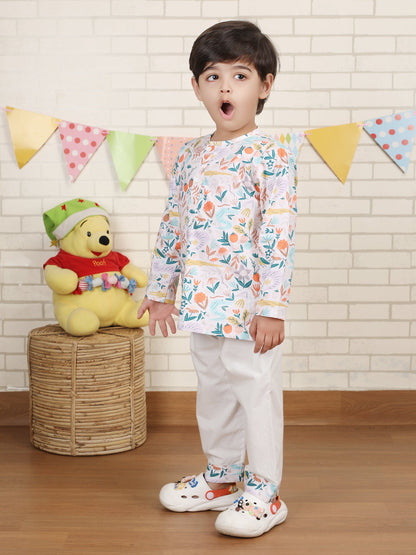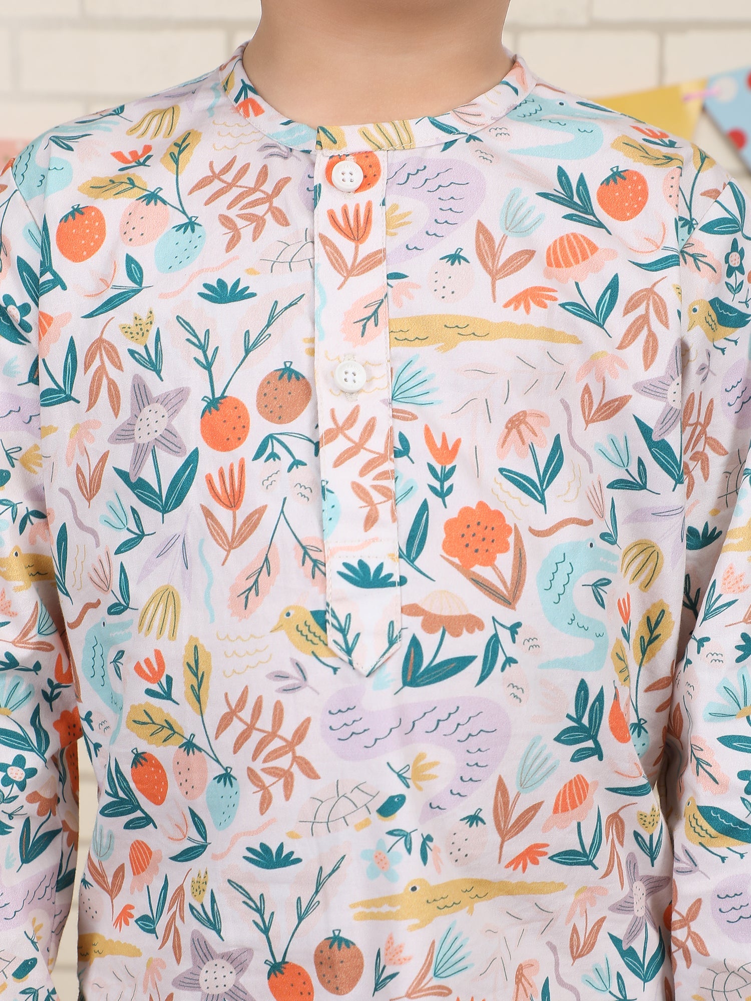 Polka Tots Fruit Floral print Full sleeves Nightwear Kurta pyjama set - Multicolor