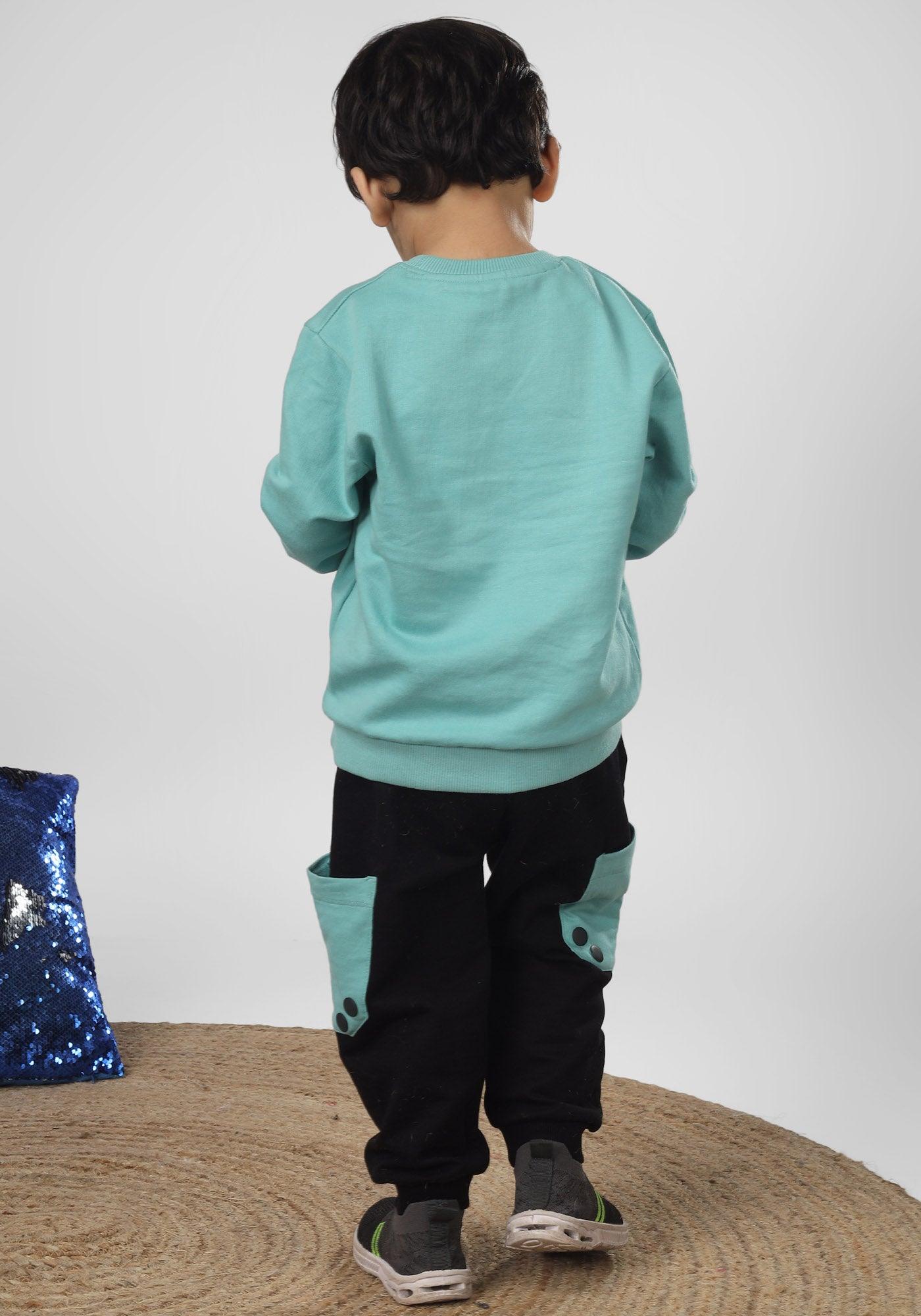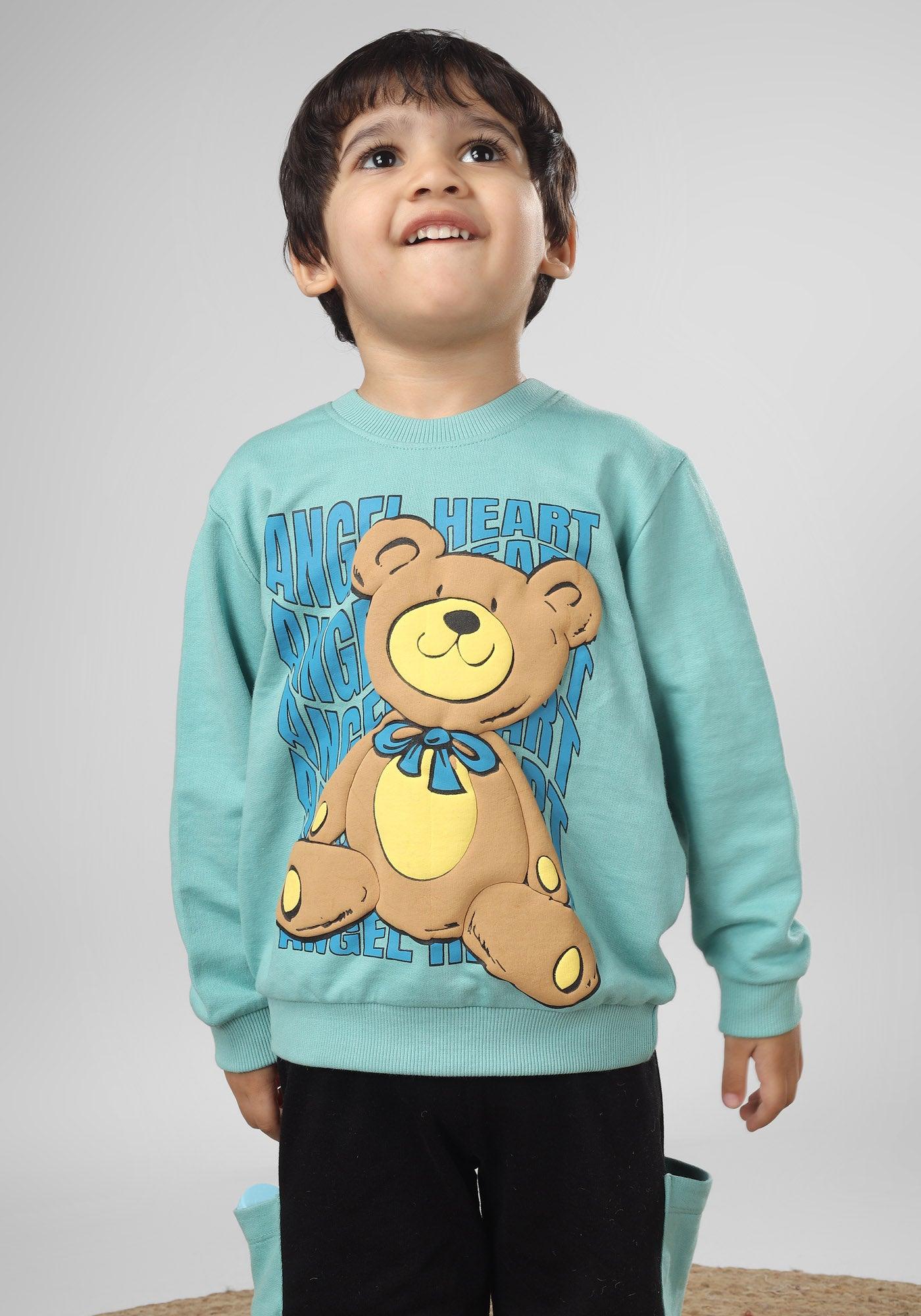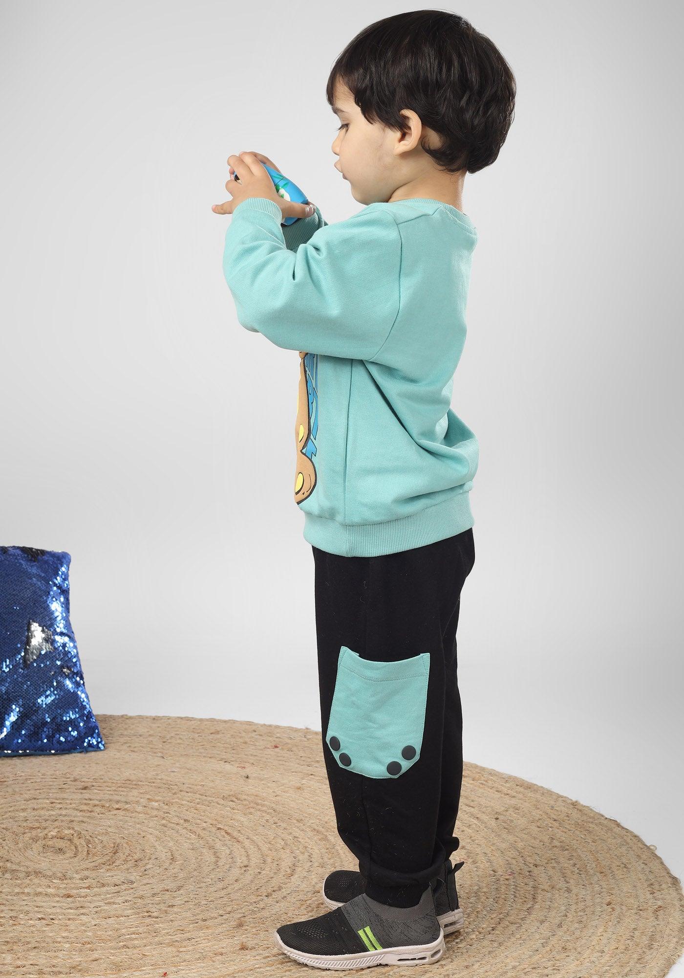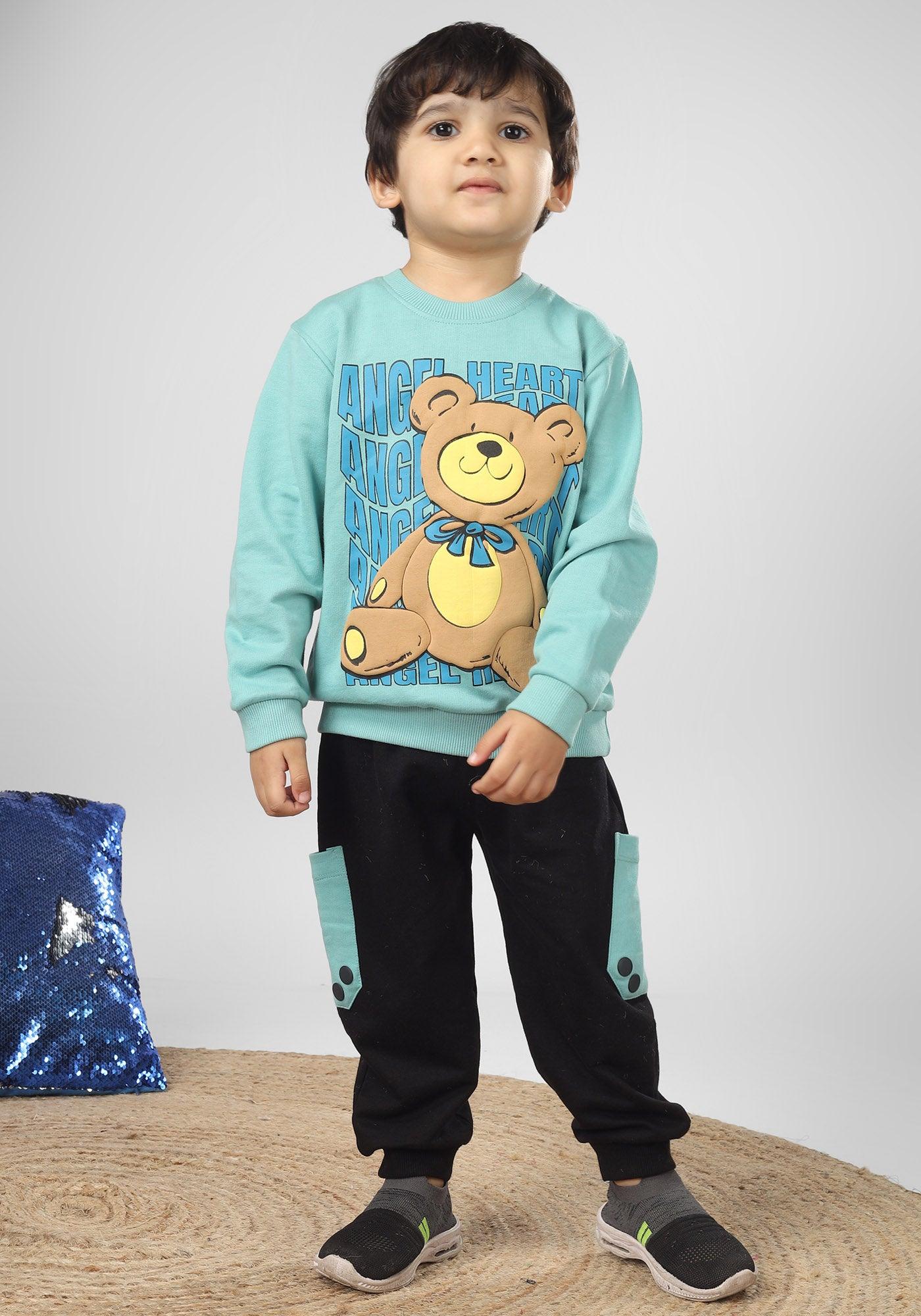 Polka Tots Full Sleeve Teddy Bear Print Co-ord set - Sea green