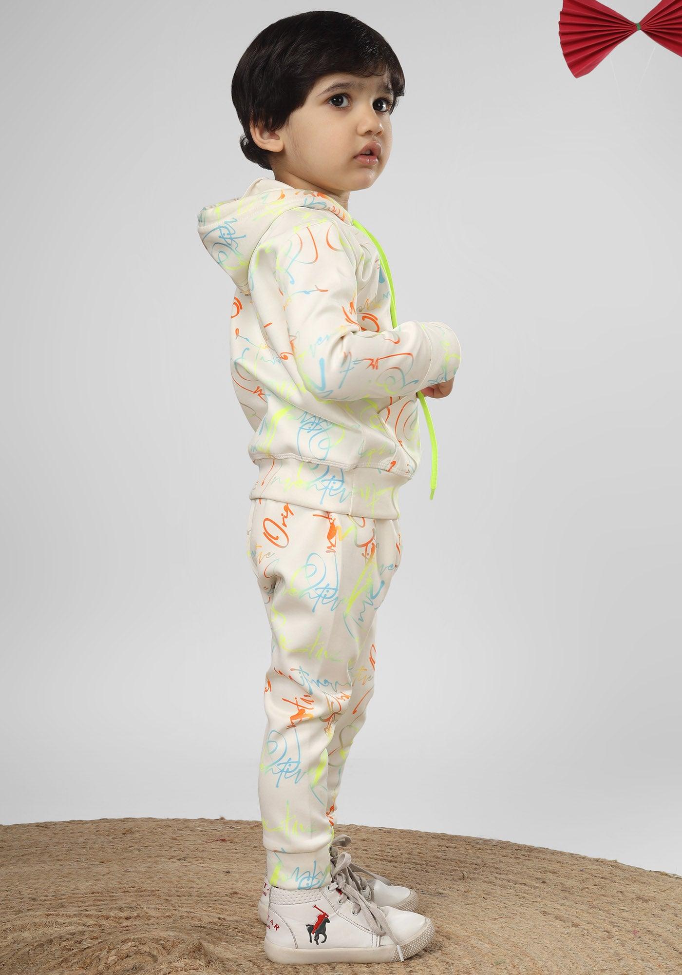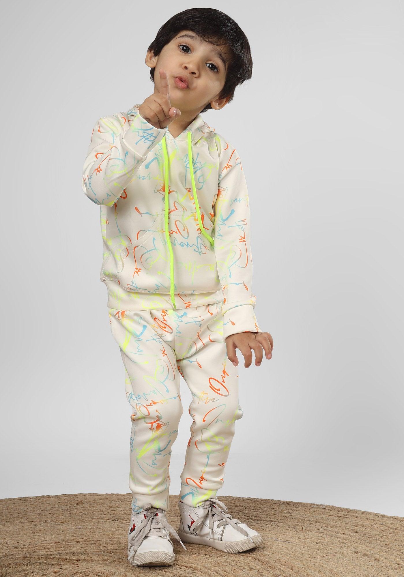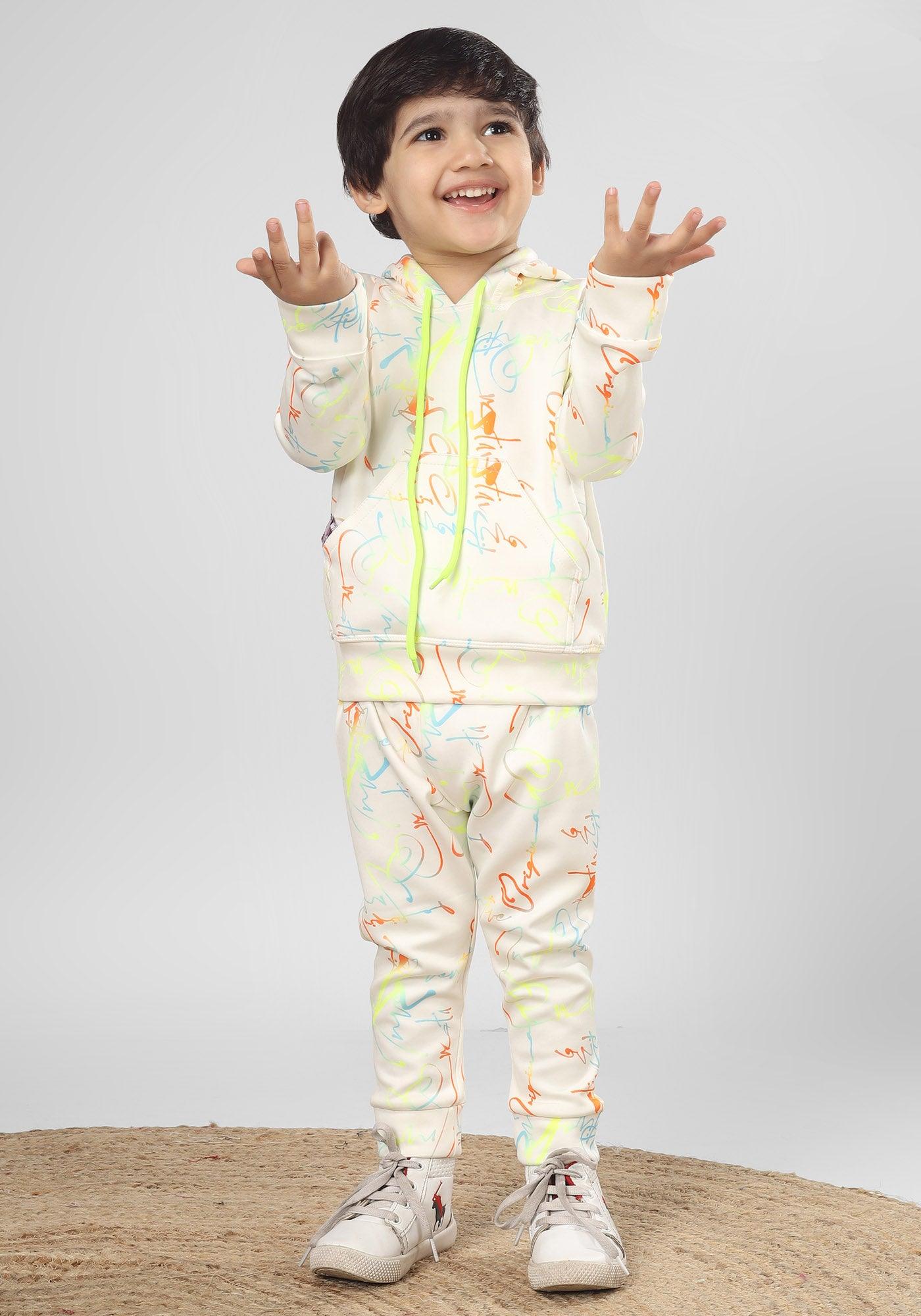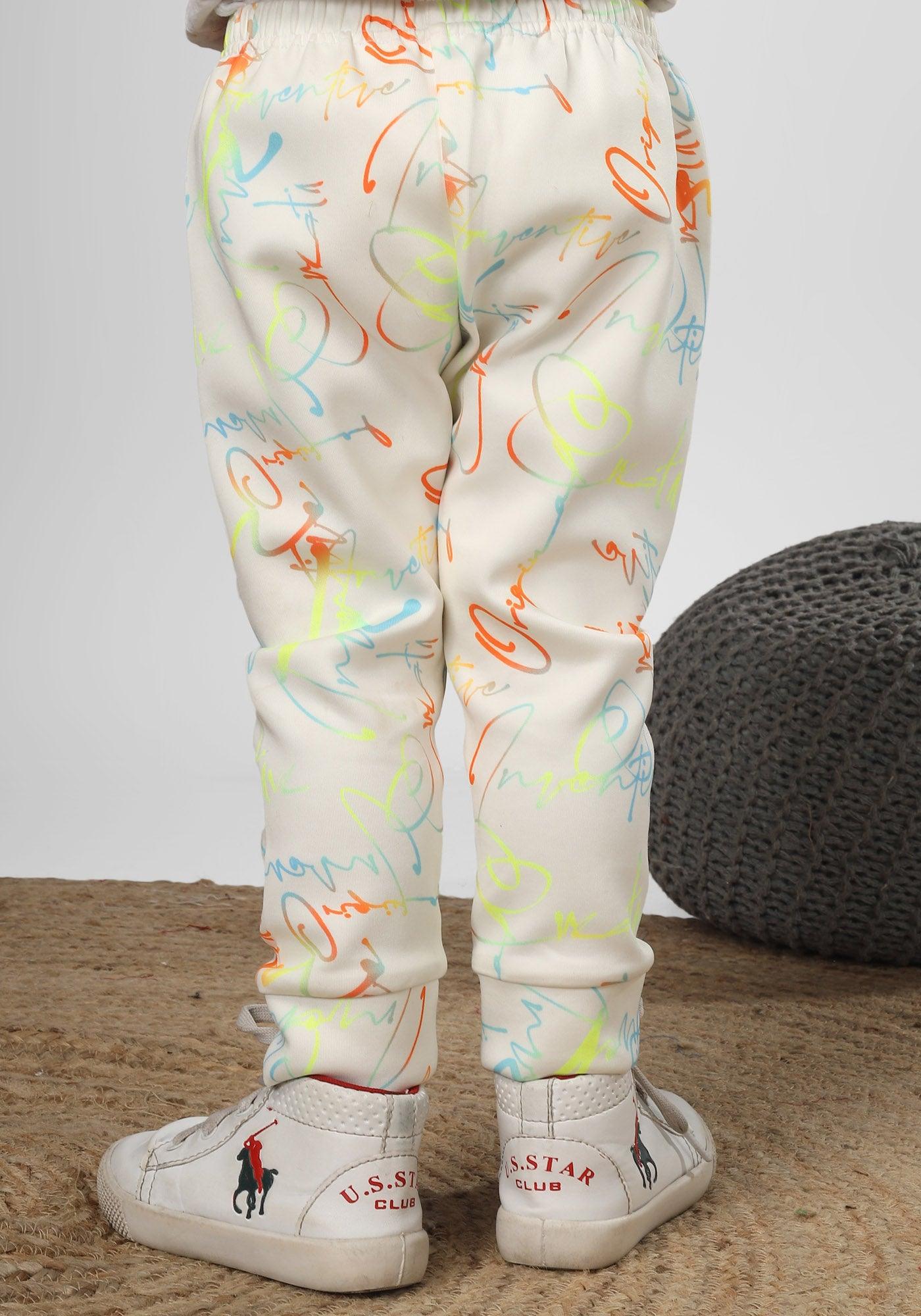 Polka Tots Full sleeve Neon Letters Print Co-ord Set - White