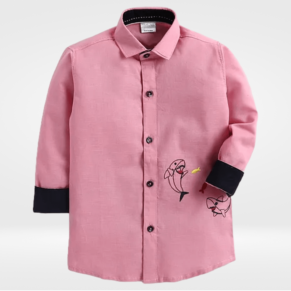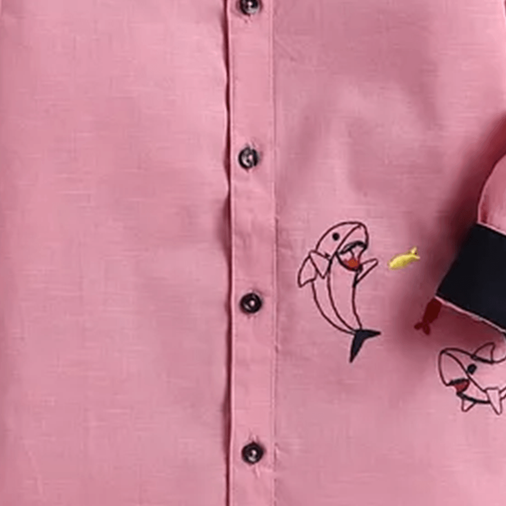 Polka Tots Full Sleeve Dolphin Embroidery Shirt - Pink