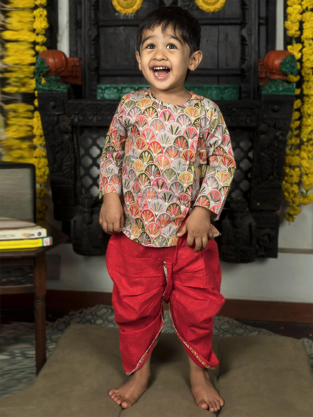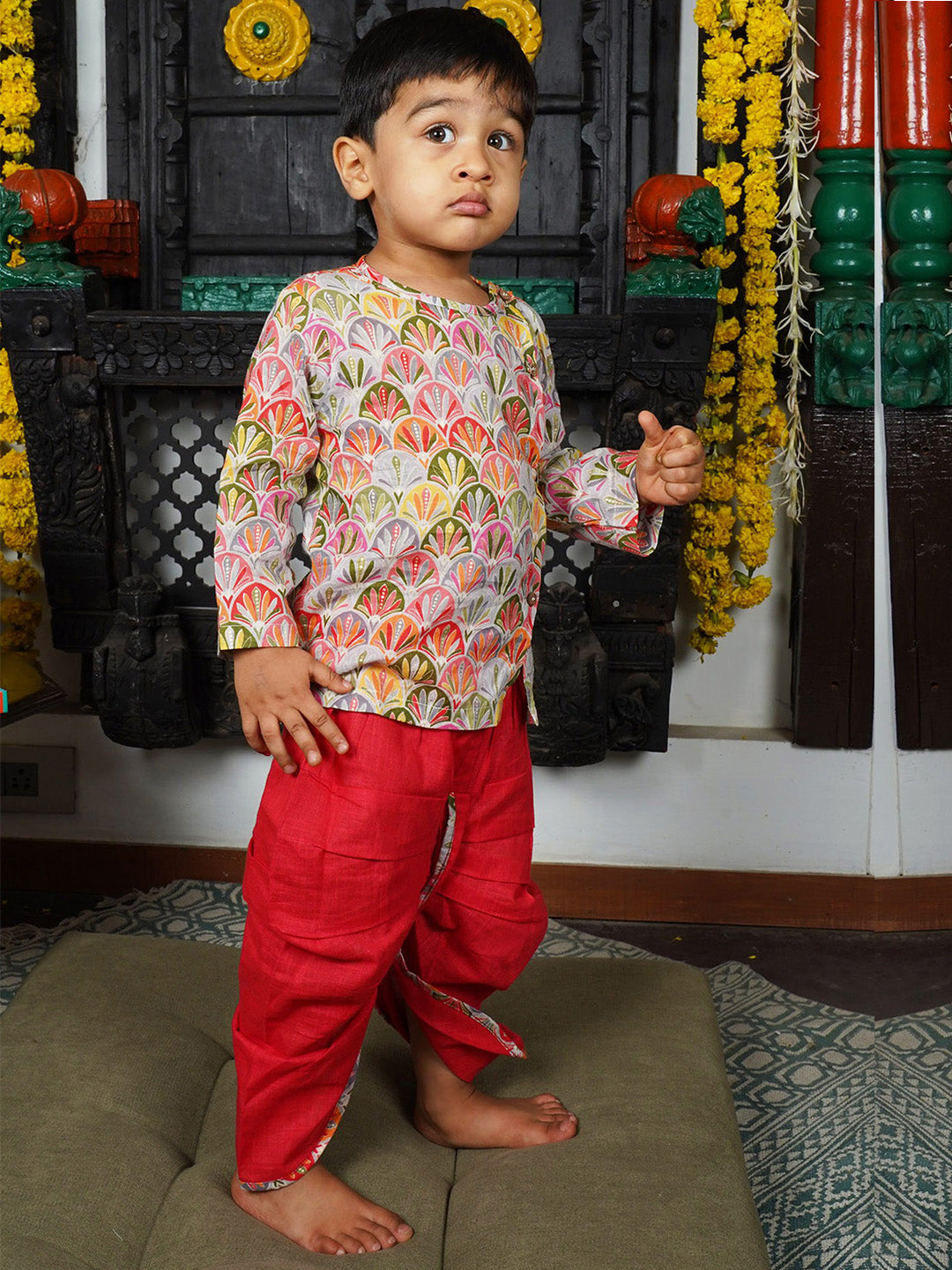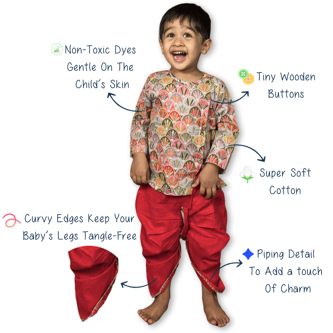 Polka Tots’ Angrakha is crafted from high-quality cotton, making it soft,