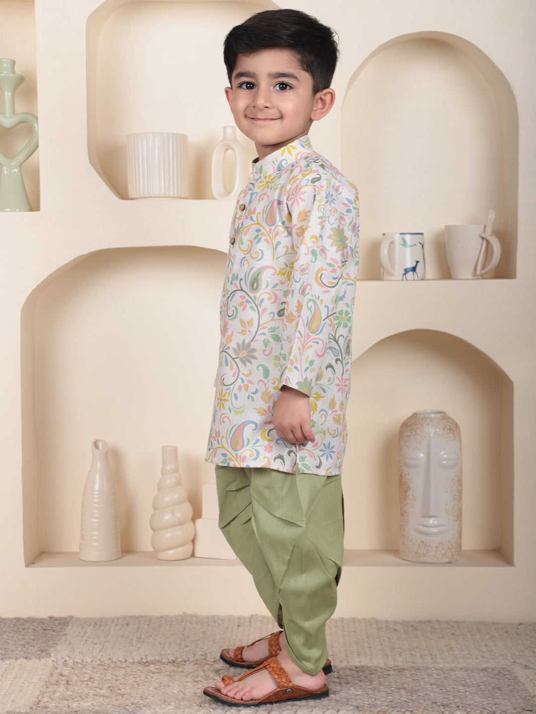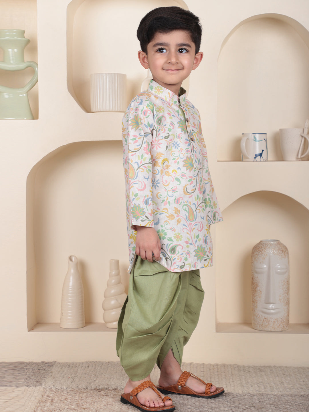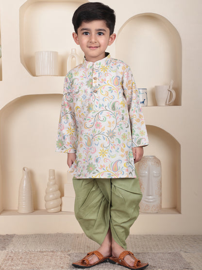Polka Tots Full Sleeve Floral print Kurta With Dhoti Set - Green