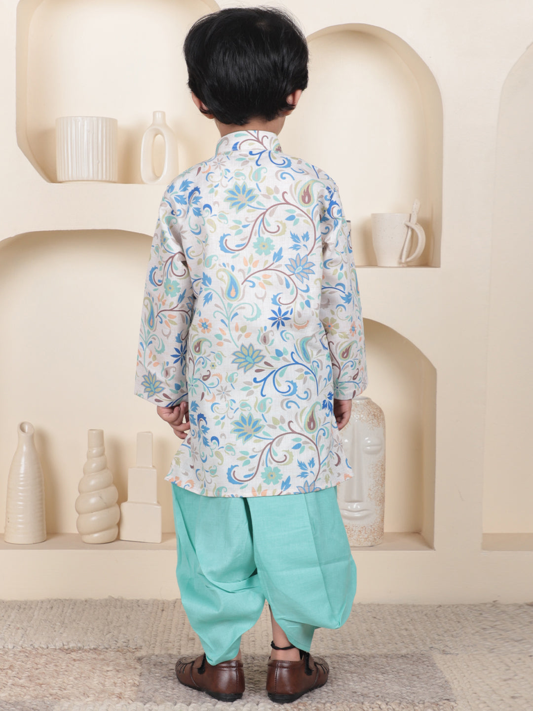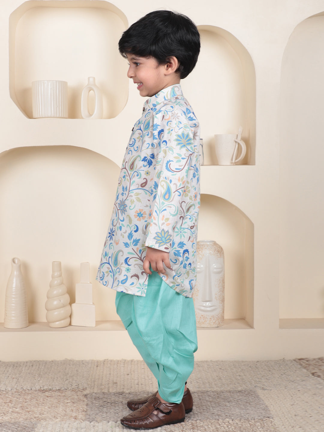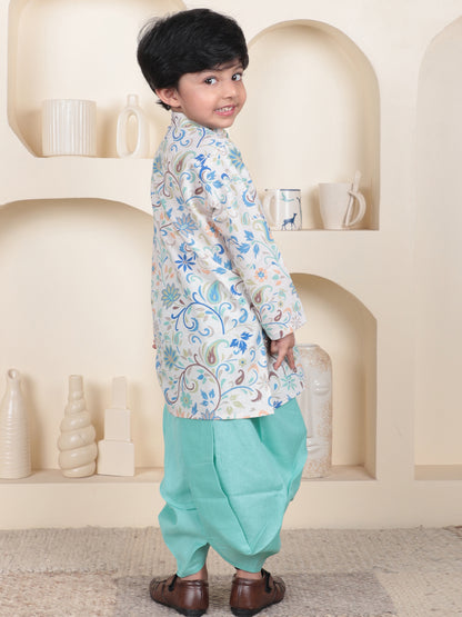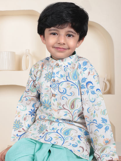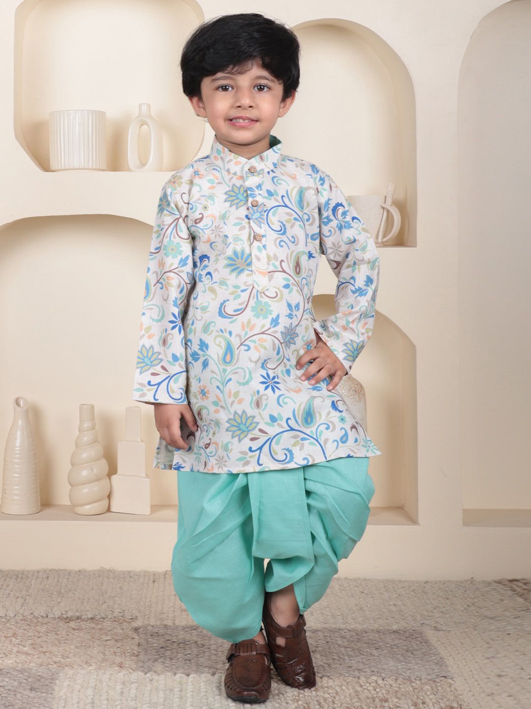 Polka Tots Full Sleeve Floral print Kurta With Dhoti Set - Blue