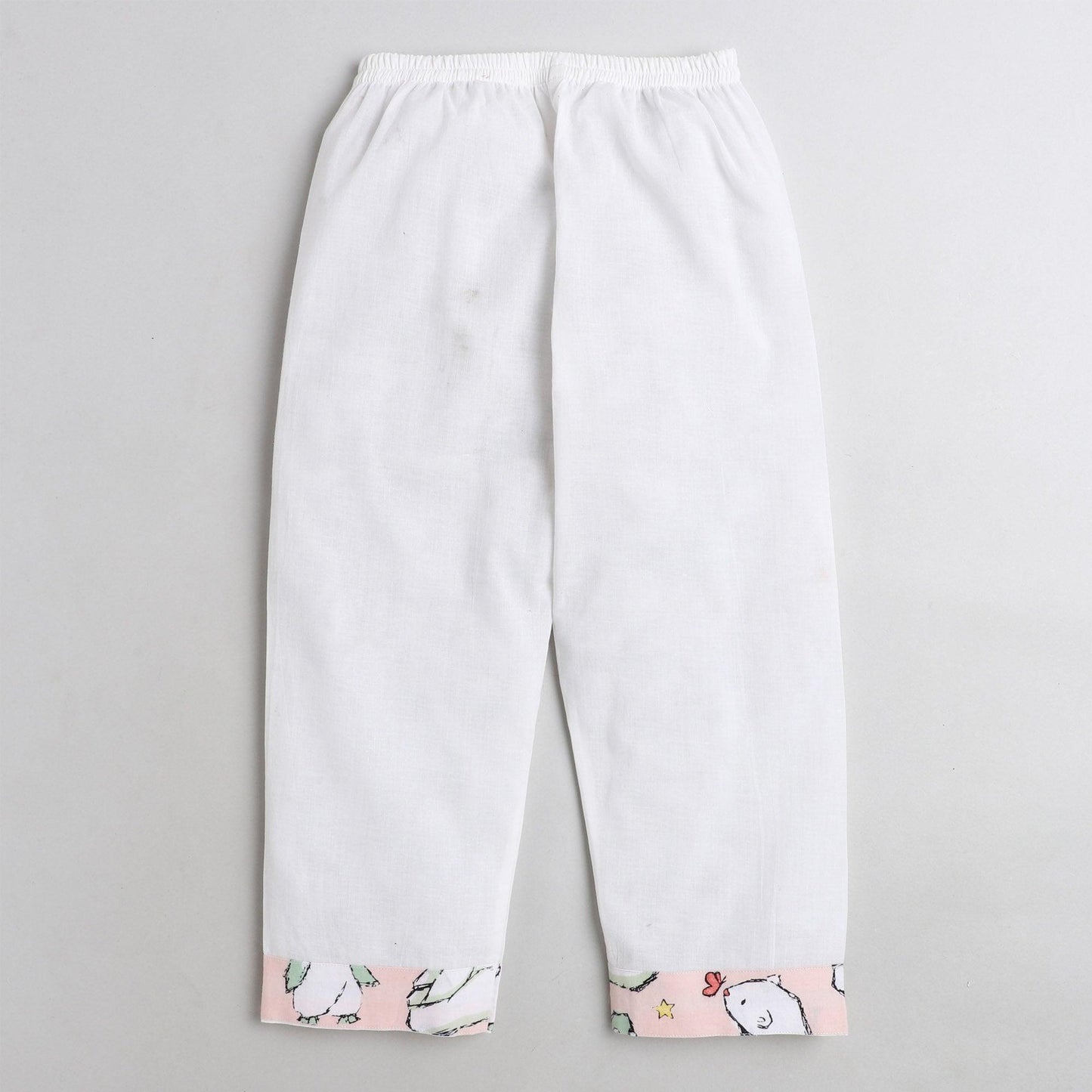 Polka Tots Bear print Full sleeves Nightwear Kurta pyjama set - White