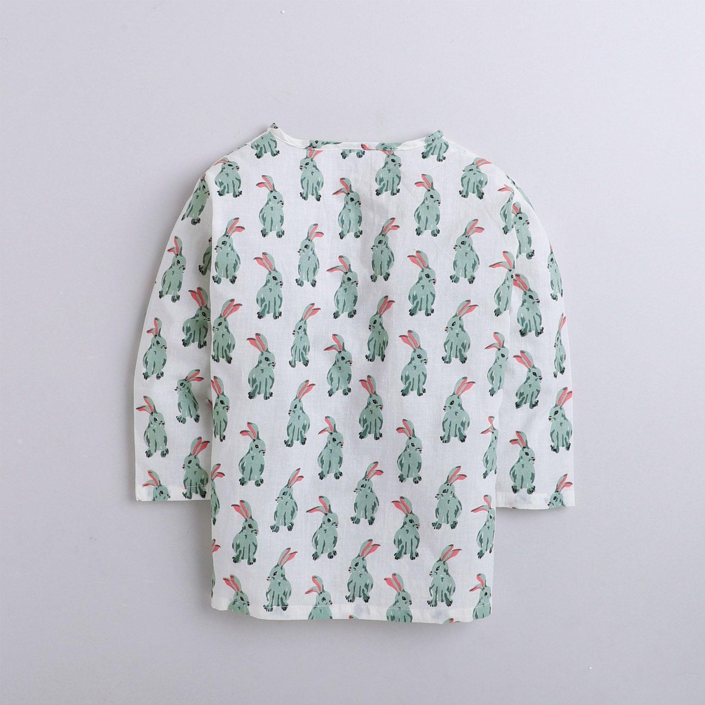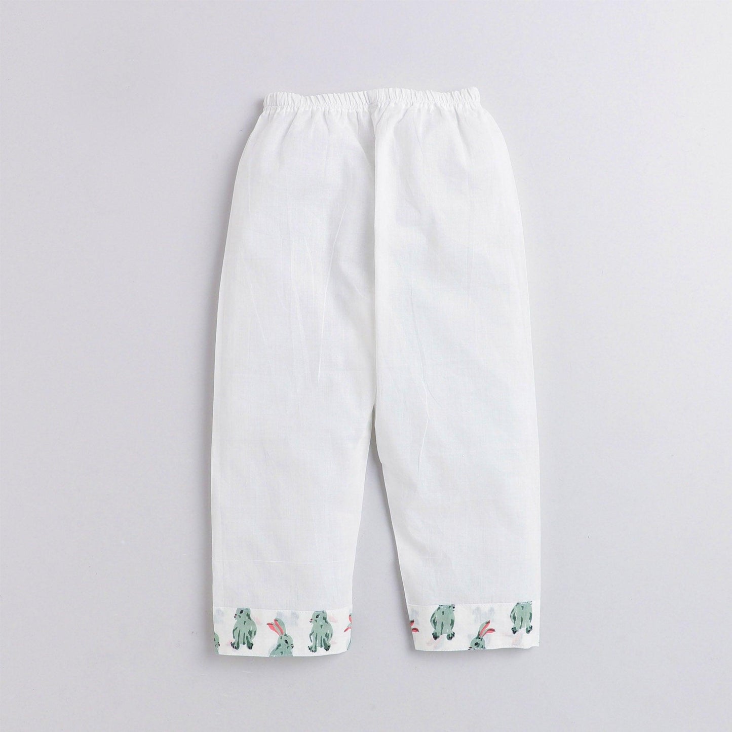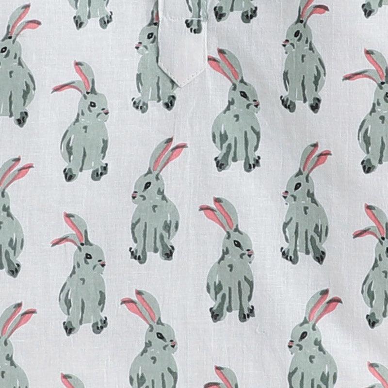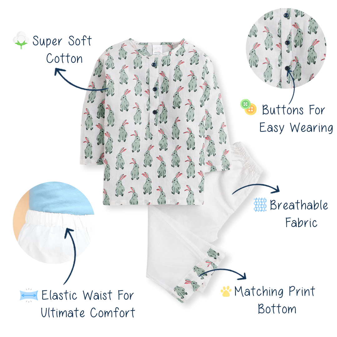 Polka Tots Rabbit print Full sleeves Nightwear Kurta pyjama set - White