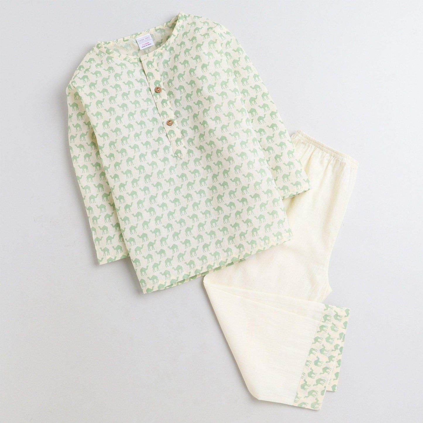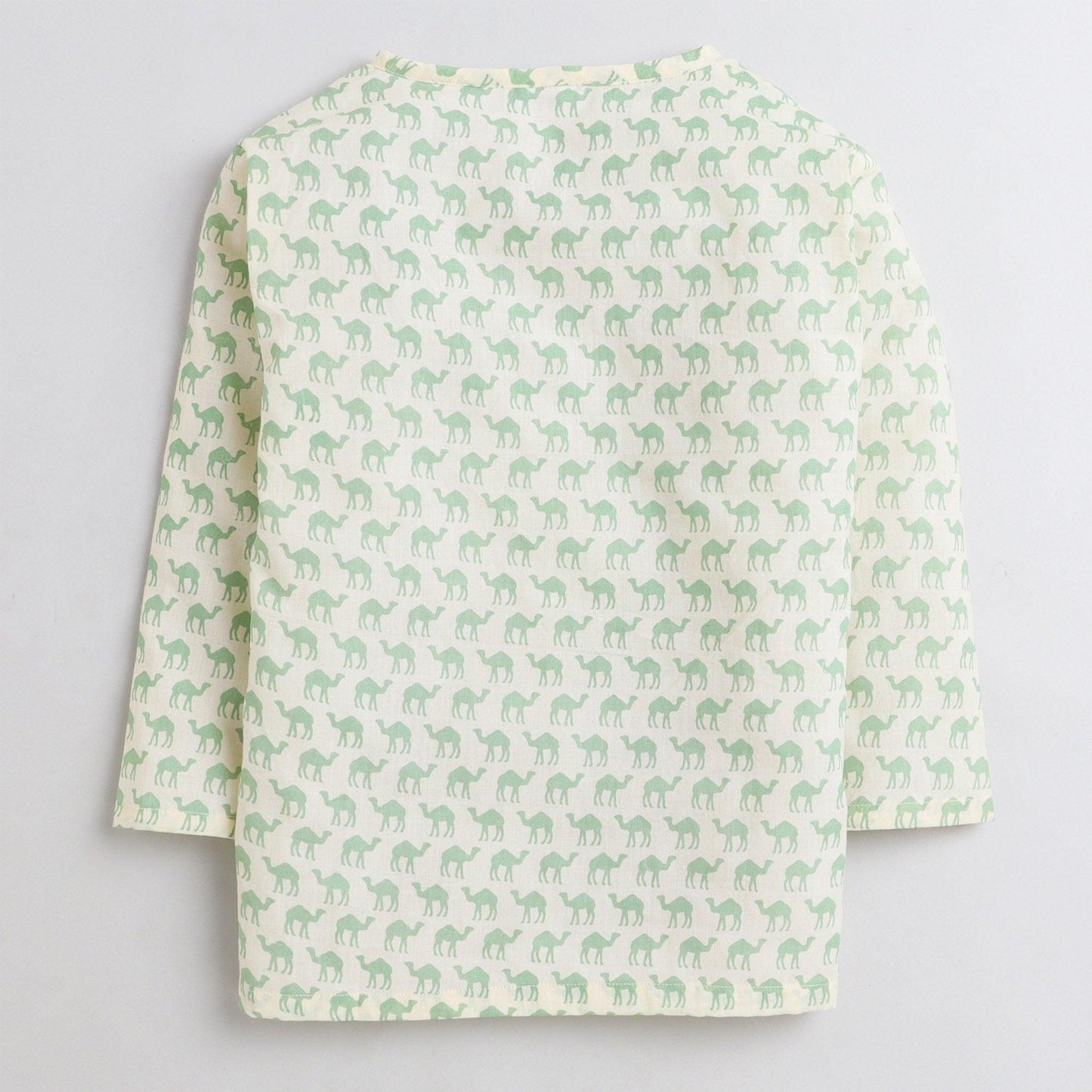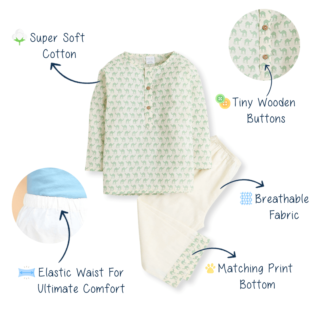 Polka Tots Camel print Full sleeves Nightwear Kurta pyjama set - Green