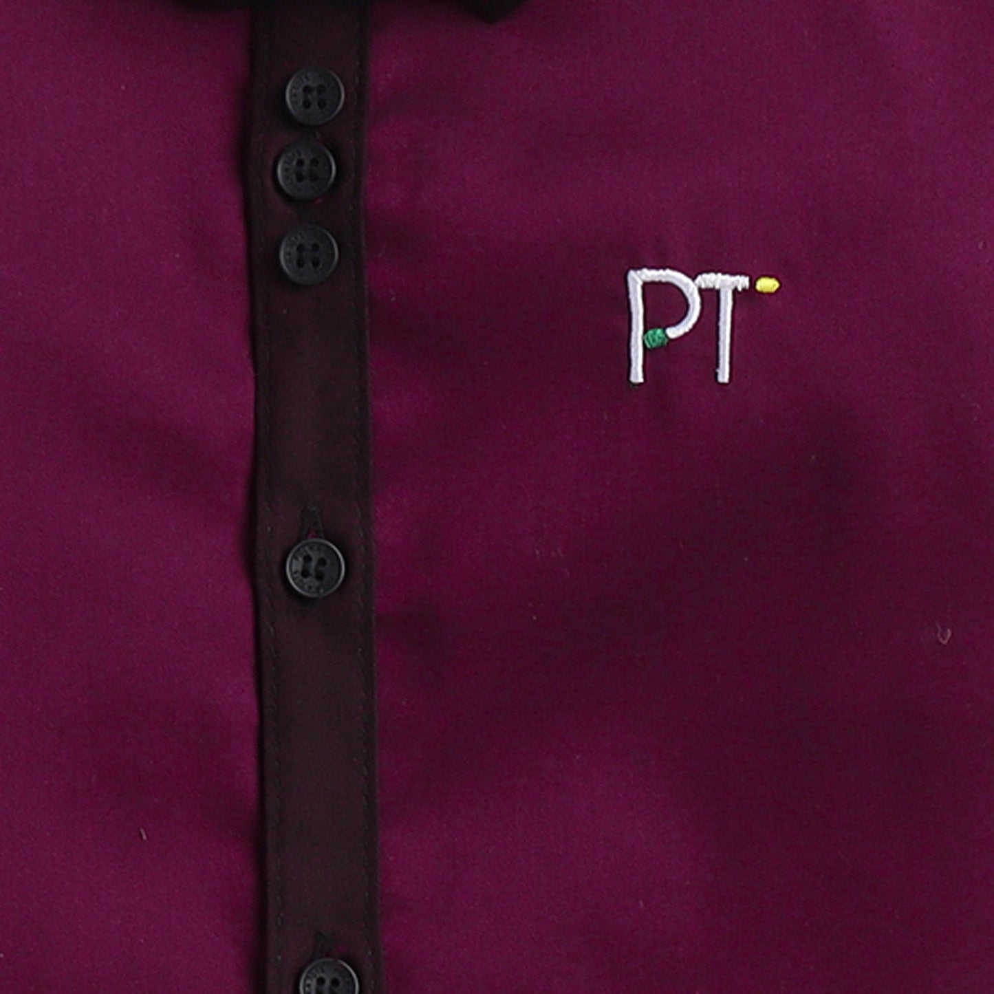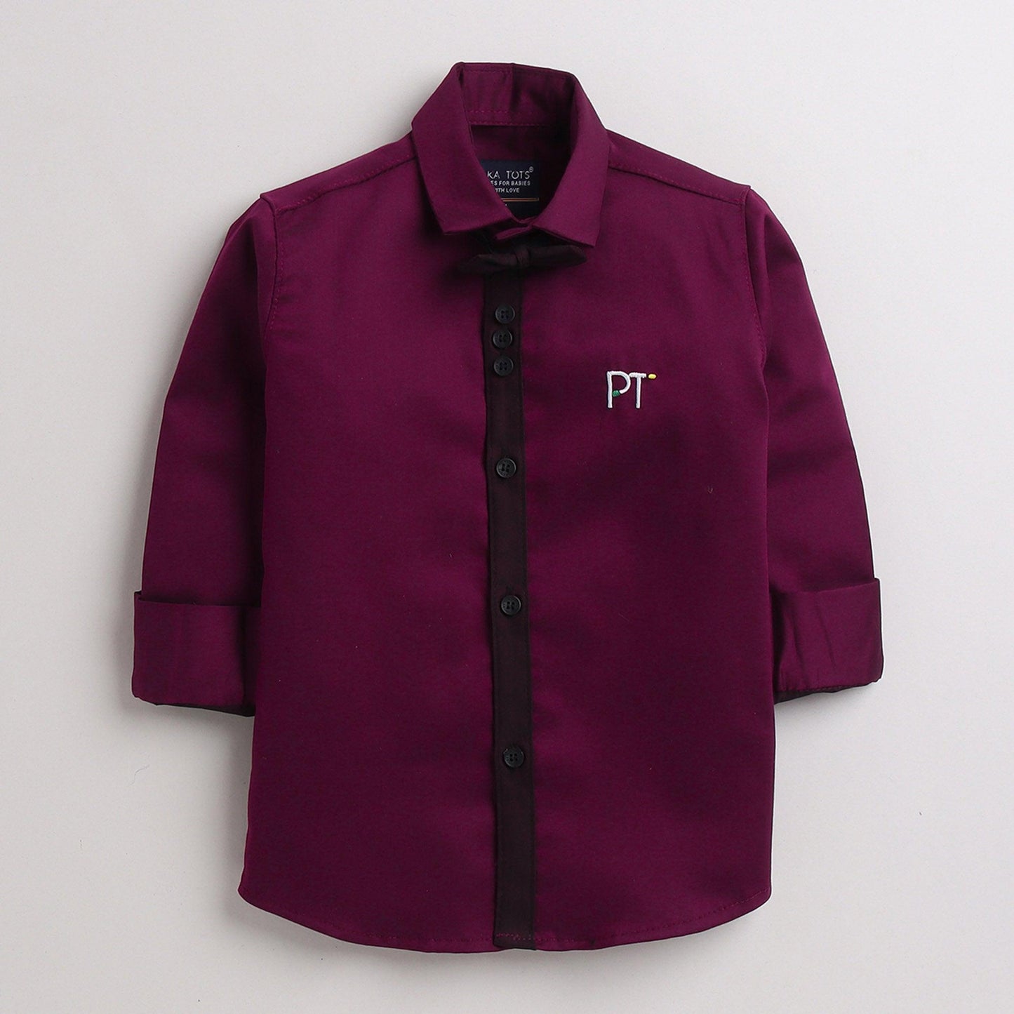 Polka Tots Full Sleeve Party Wear Reverse Collar Placket With Bow Tie Shirt - Maroon