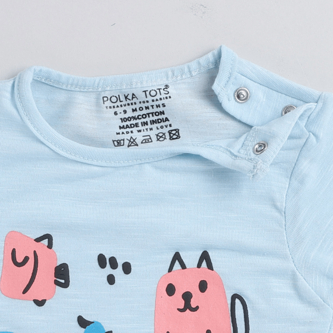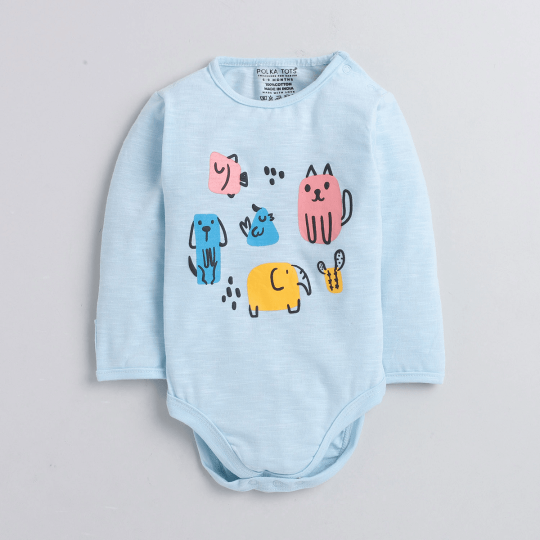 Polka Tots Full Sleeve Romper onesie Animal print - Blue