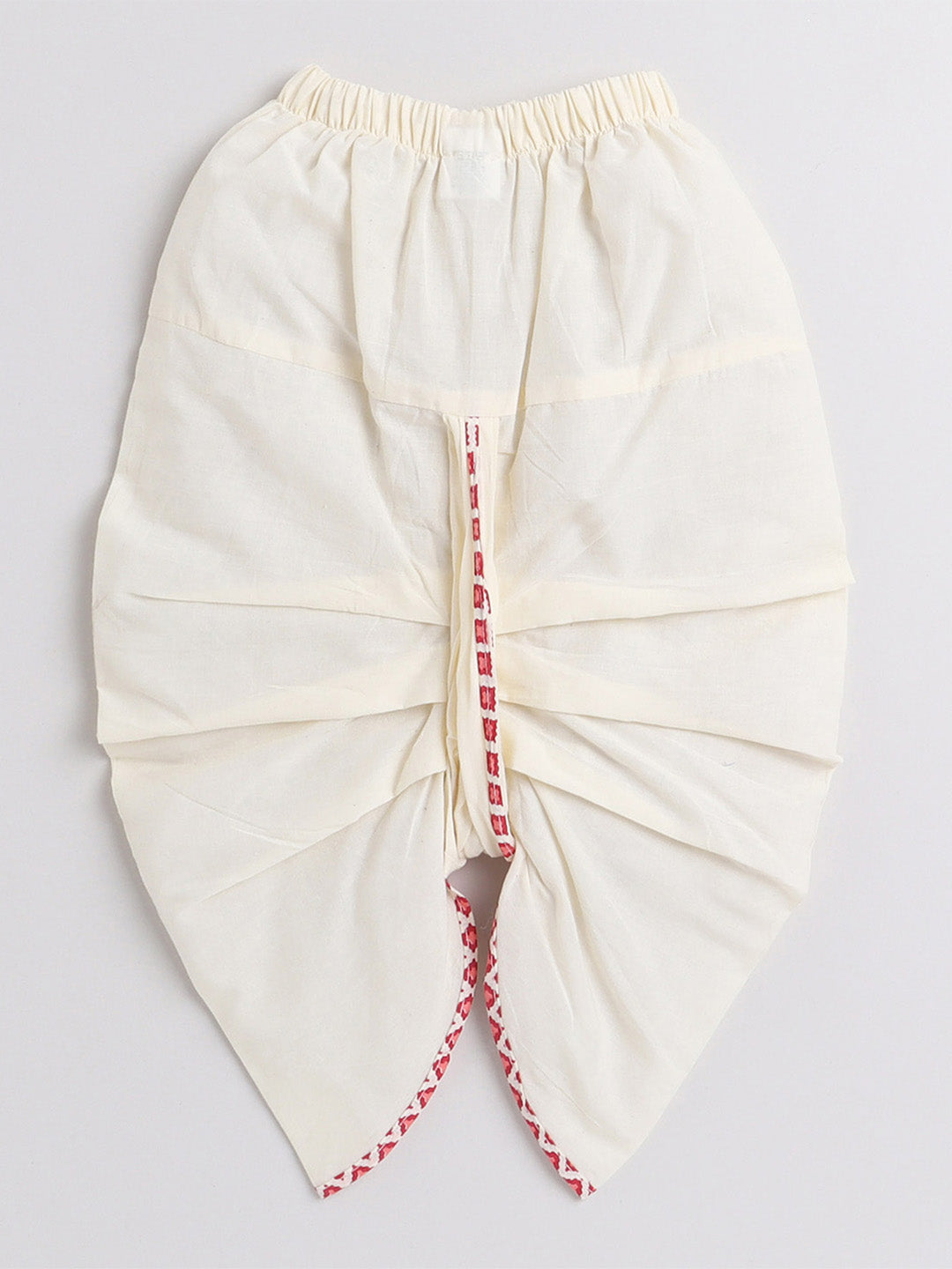 Polka Tots Full Sleeve Small Square Print Angrakha With Piping Dhoti - Cream